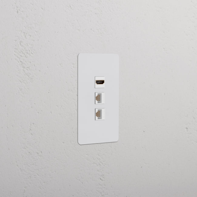 This 1 gang mixed outlet combines an HDMI keystone outlet and two CAT 6 keystone outlets on one plate.