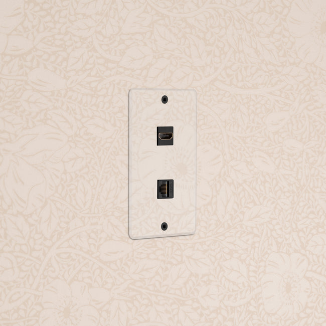 This 1 gang mixed outlet combines an HDMI keystone outlet and CAT 6 keystone outlet on one plate.