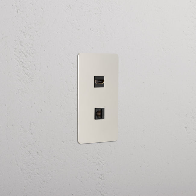 This 1 gang mixed outlet combines an HDMI keystone outlet and CAT 6 keystone outlet on one plate.