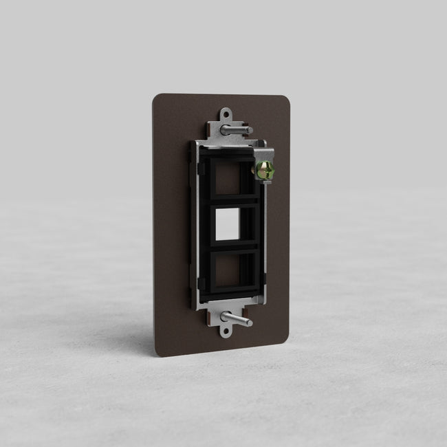Our Grove collection is designed to be easy to retrofit. The switches and outlets will work with your existing old and new work boxes, but you can also use ours if you’re adding to your setup. The switches and outlets in our Kew collection only work with new work boxes that are recessed into the wall. You can use our new work boxes for this, but if a different new work box is already recessed into the wall, that’s fine to use too.