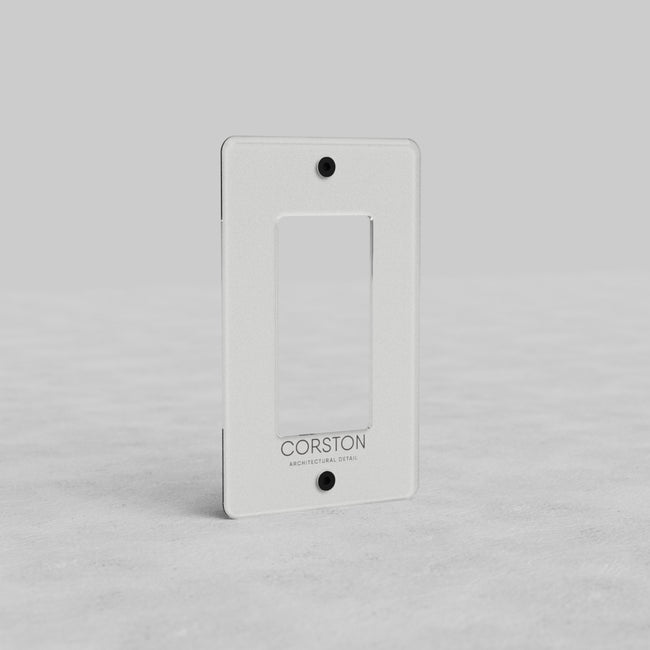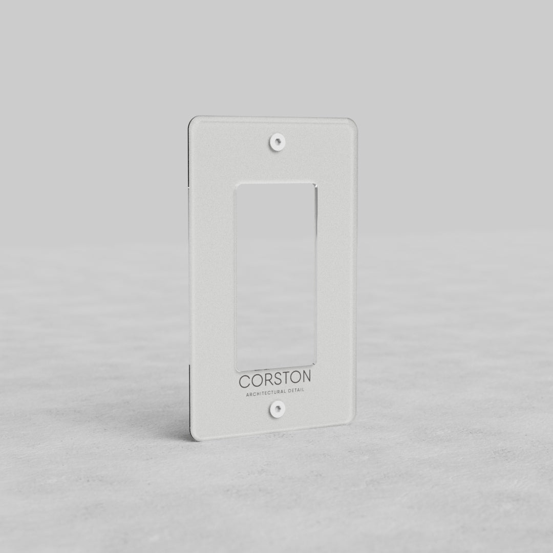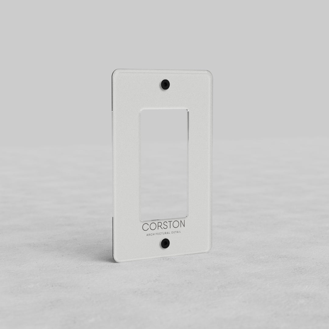 This Kew clear 1 gang outlet plate works with any one of our rocker switches or our outlet modules.