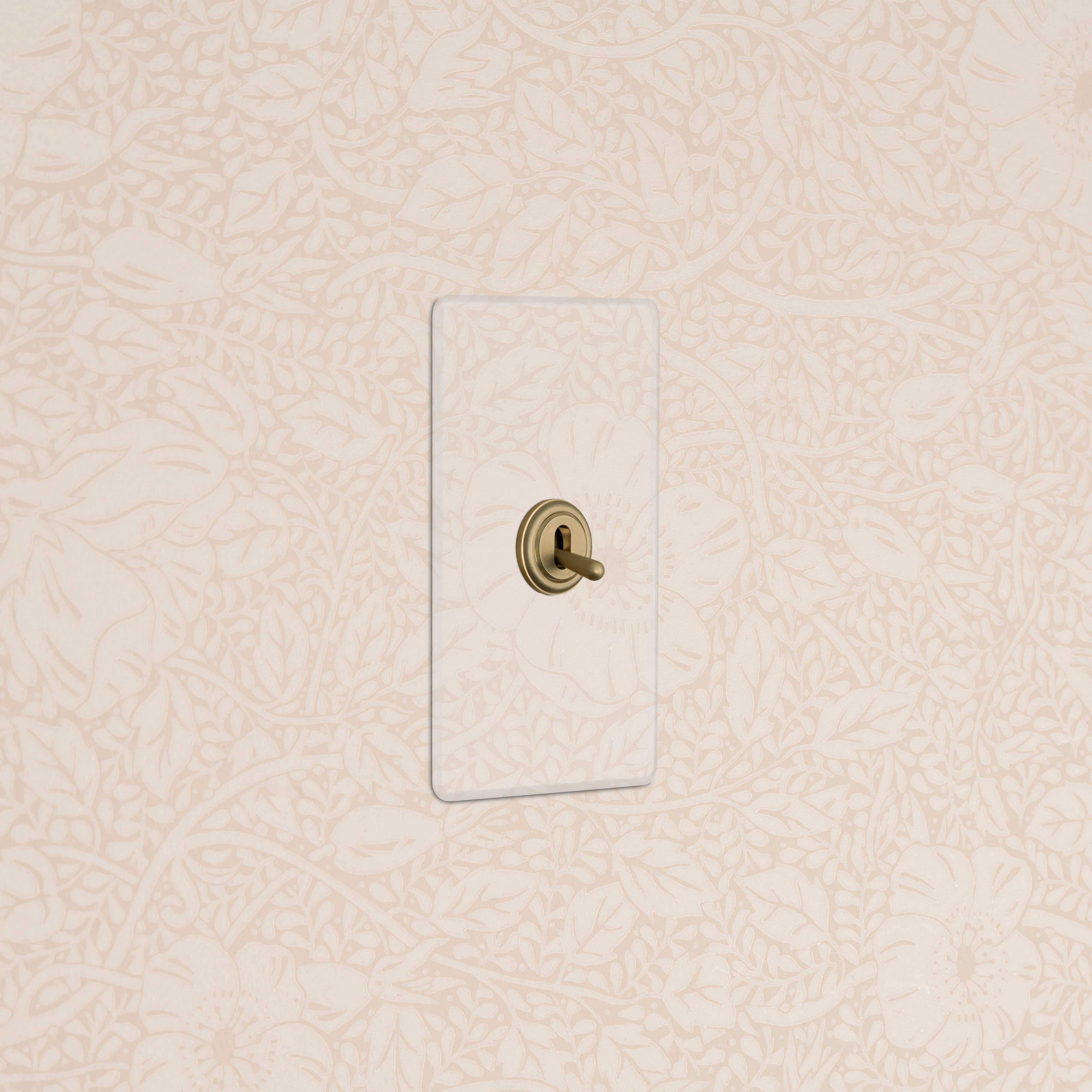 The clear switches and outlets in our Kew collection come with backing paper that you can either paint or use as a wallpaper template. The transparent front plate is then secured over the backing paper to conceal the electrics. All our electrical products should be installed by a qualified electrician.