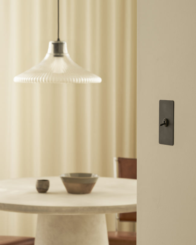Our 1 gang three-way toggle switch is a modern take on the classic dolly design. We’ve crafted it to be as sleek and timeless as possible in any interior setting.