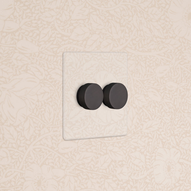 Our 2 gang rotary dimmer switch is crafted to be as sleek and timeless as possible in any interior setting.