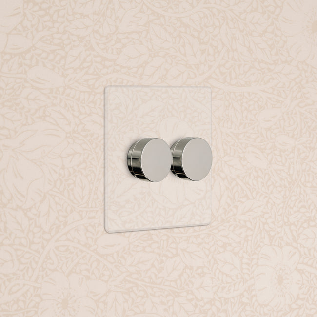 Our 2 gang rotary dimmer switch is crafted to be as sleek and timeless as possible in any interior setting.