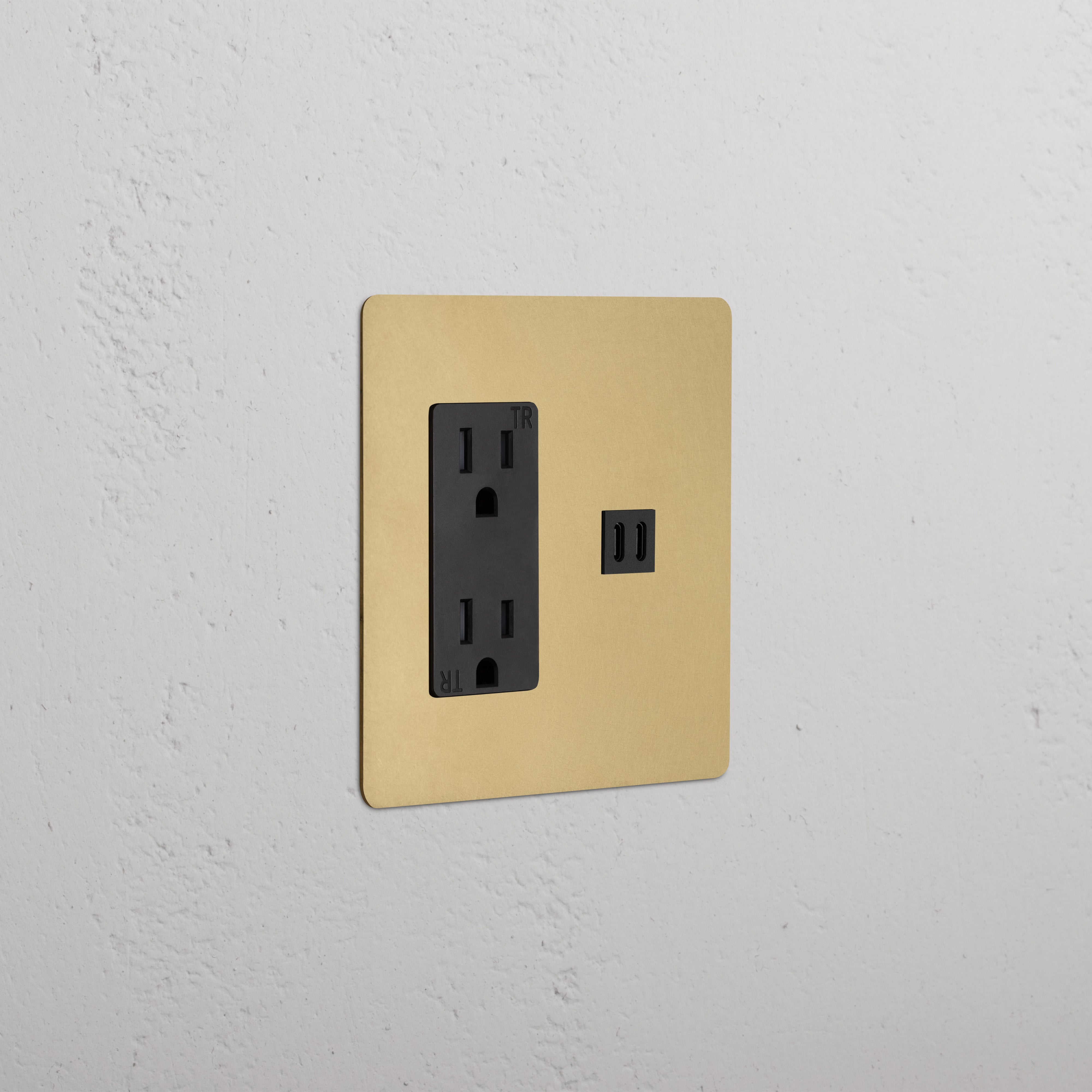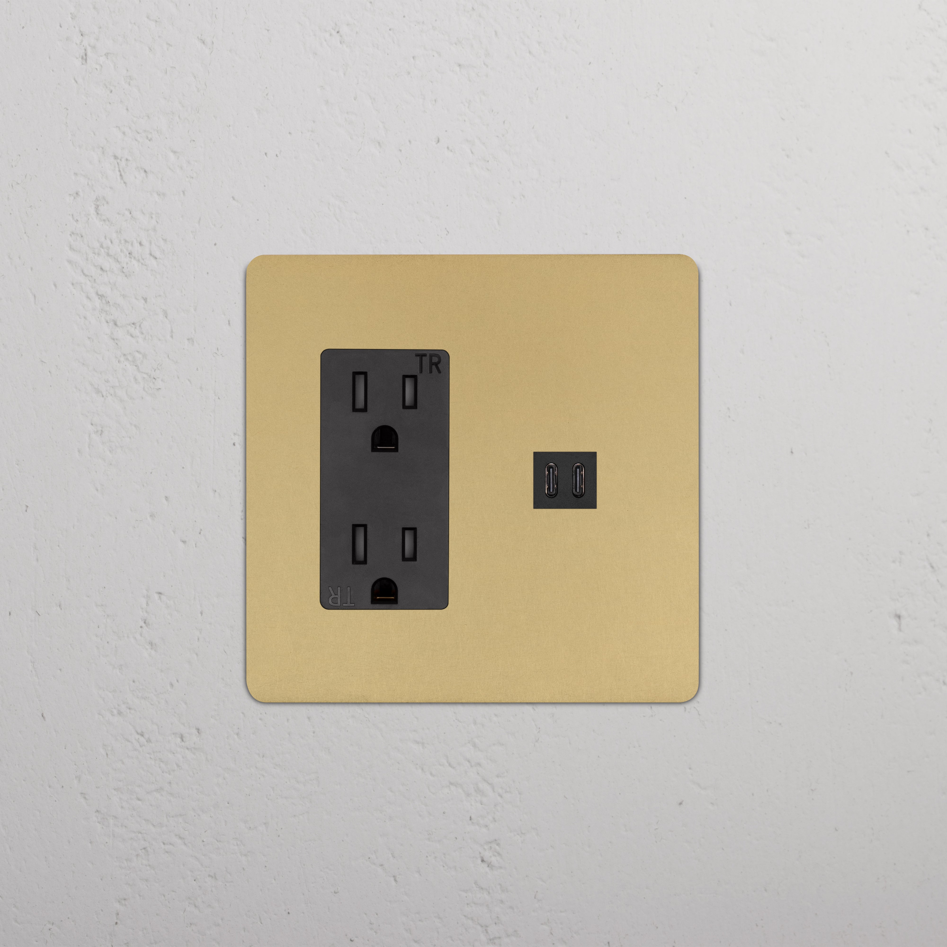 This 2 gang mixed outlet combines a 15A power outlet and a fast charge USB-C outlet on one plate.