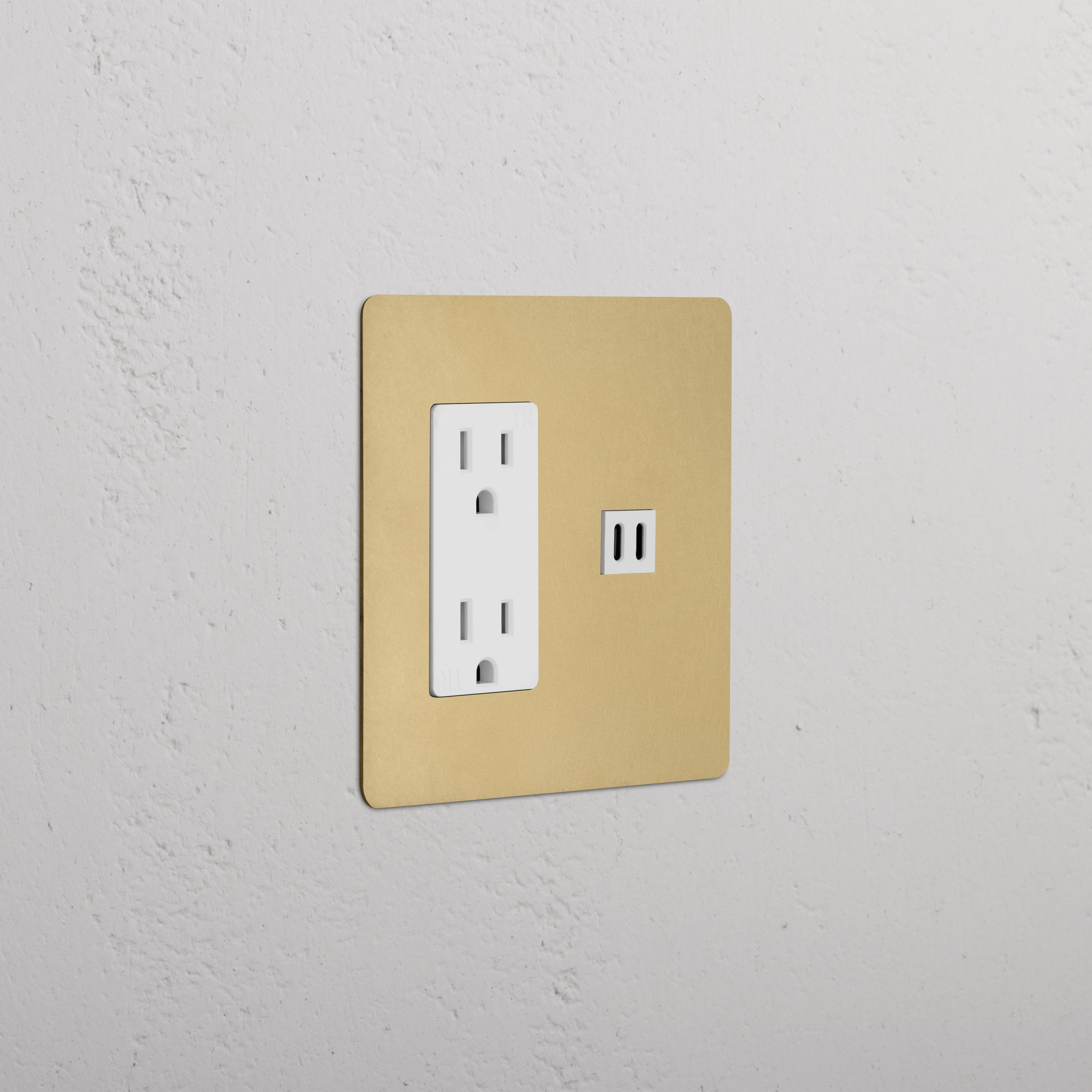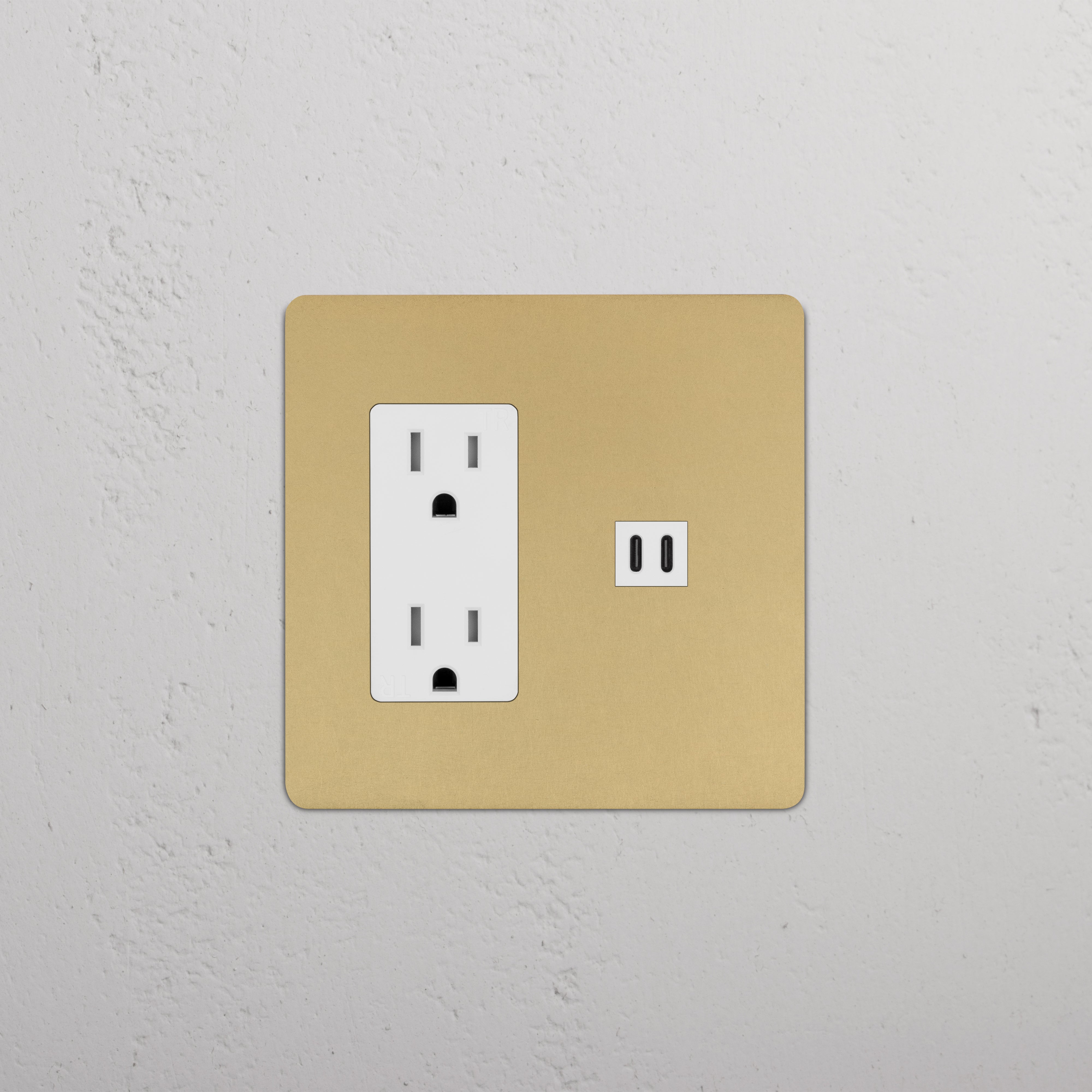 This 2 gang mixed outlet combines a 15A power outlet and a fast charge USB-C outlet on one plate.