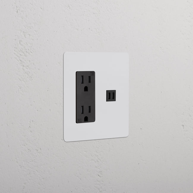 This 2 gang mixed outlet combines a 15A power outlet and a fast charge USB-C outlet on one plate.
