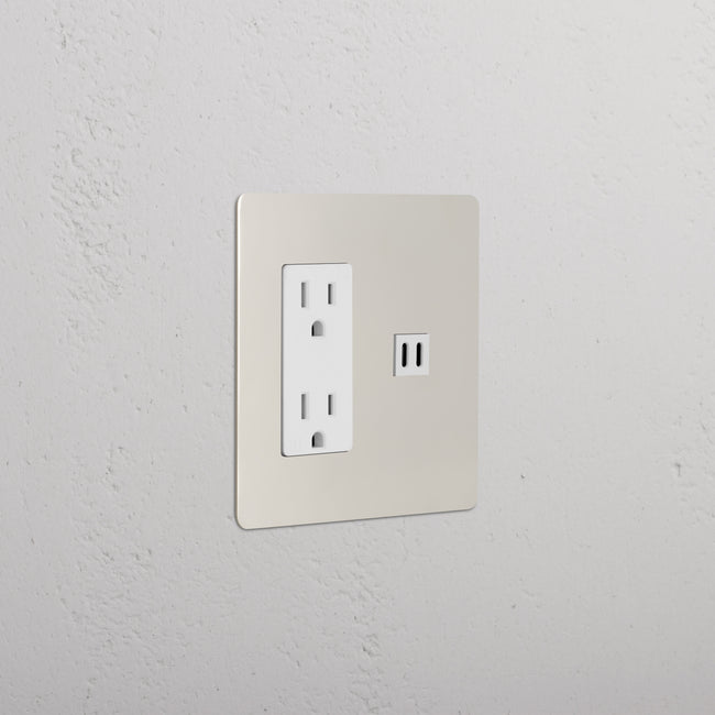 This 2 gang mixed outlet combines a 15A power outlet and a fast charge USB-C outlet on one plate.