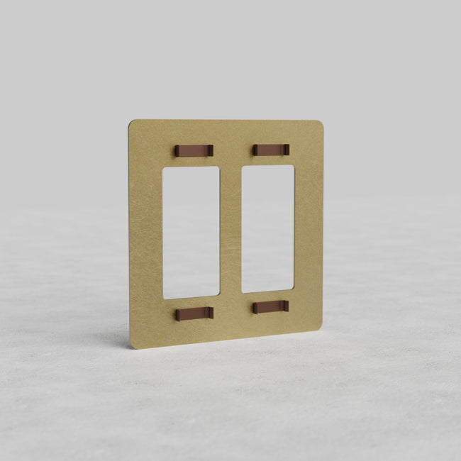 This Kew 2 gang outlet plate works with any two of our antique brass rocker switches or outlet modules.