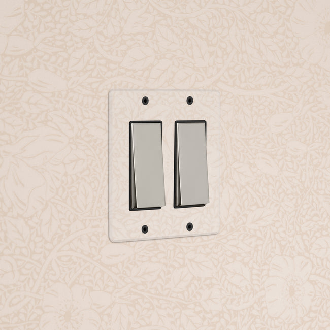 Our 2 gang three-way rocker switch is crafted to be as sleek and timeless as possible in any interior setting.