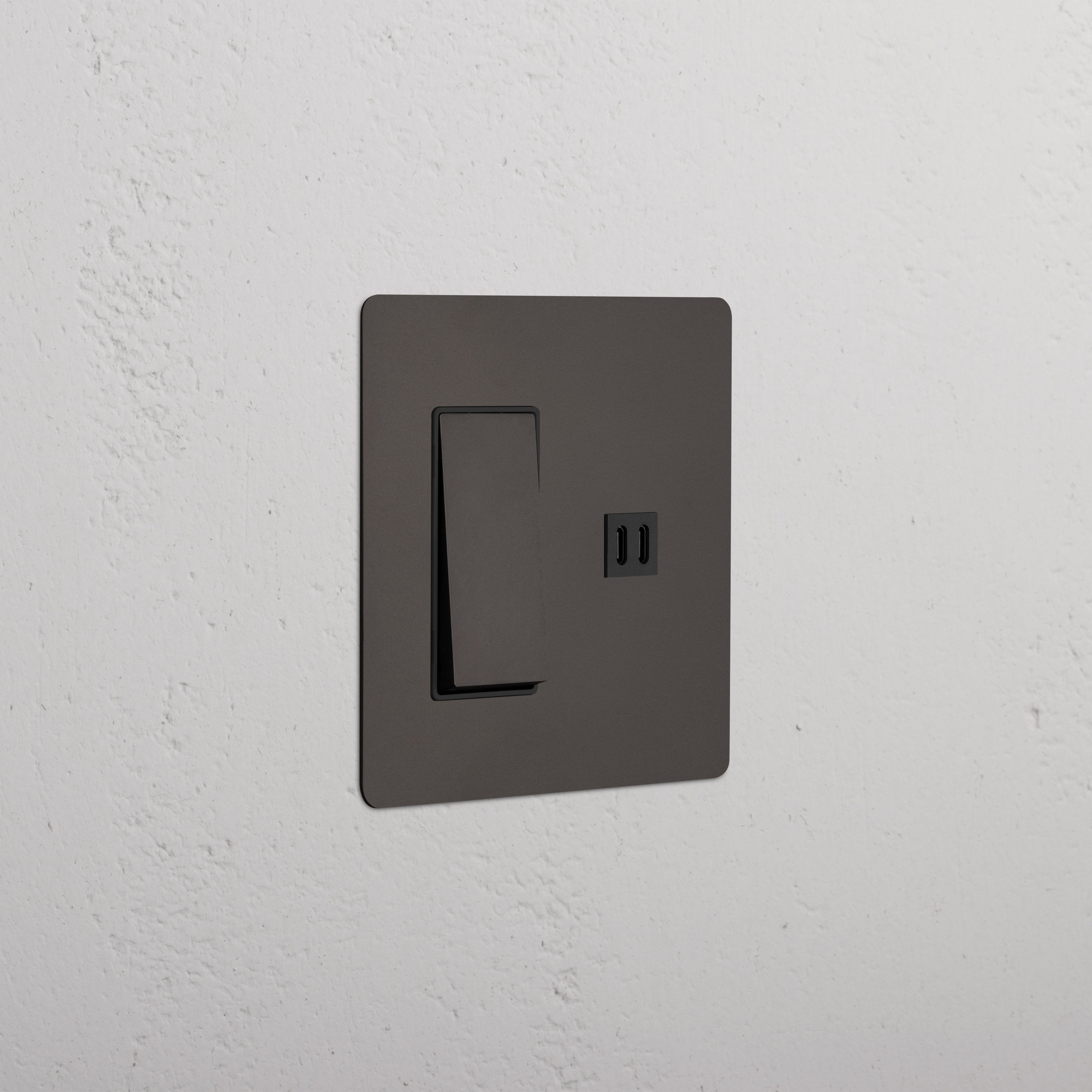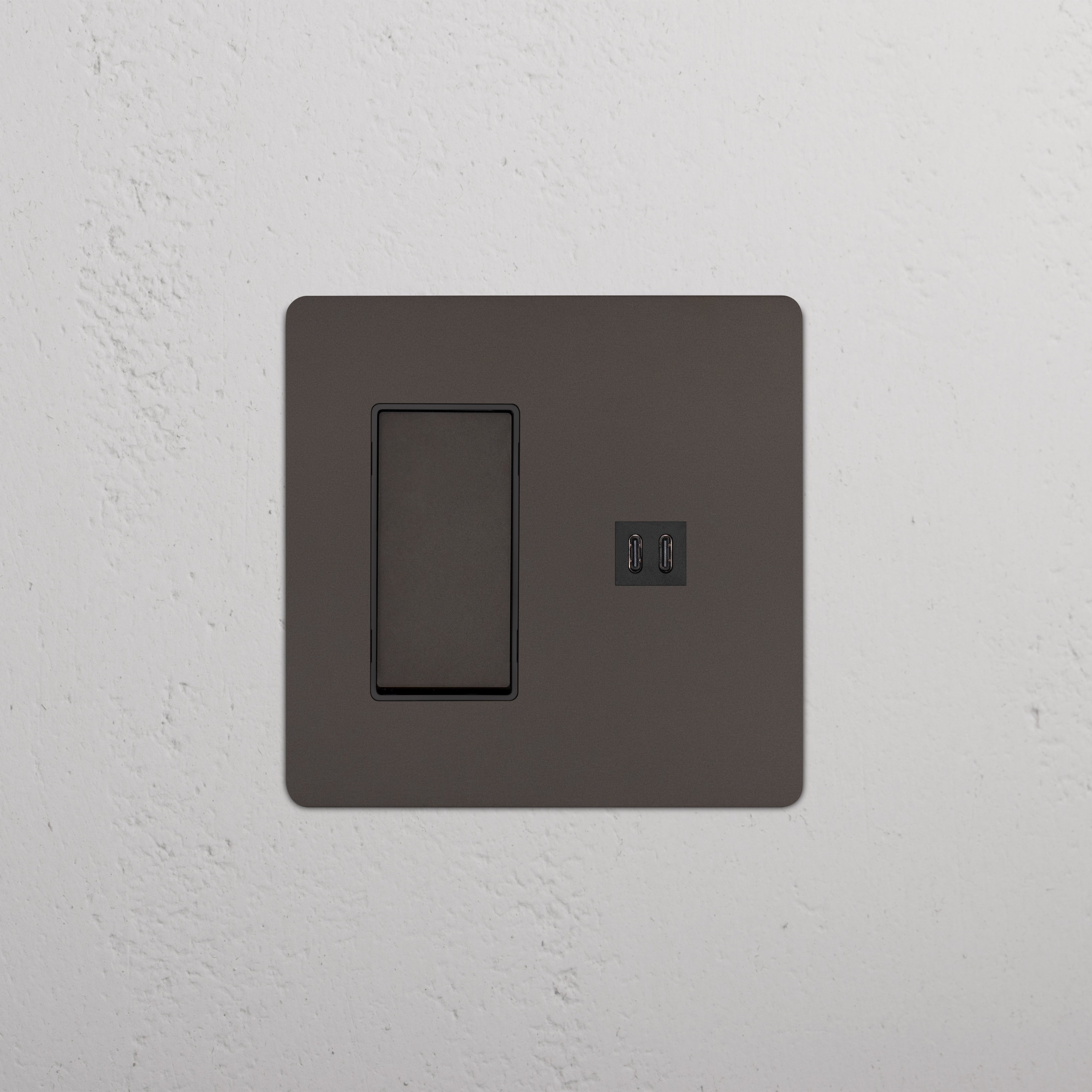 This 2 gang mixed switch and outlet combines a three-way rocker switch and a fast charge USB-C outlet on one plate.