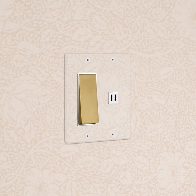 The clear switches and outlets in our Kew collection come with backing paper that you can either paint or use as a wallpaper template. The transparent front plate is then secured over the backing paper to conceal the electrics. All our electrical products should be installed by a qualified electrician.
