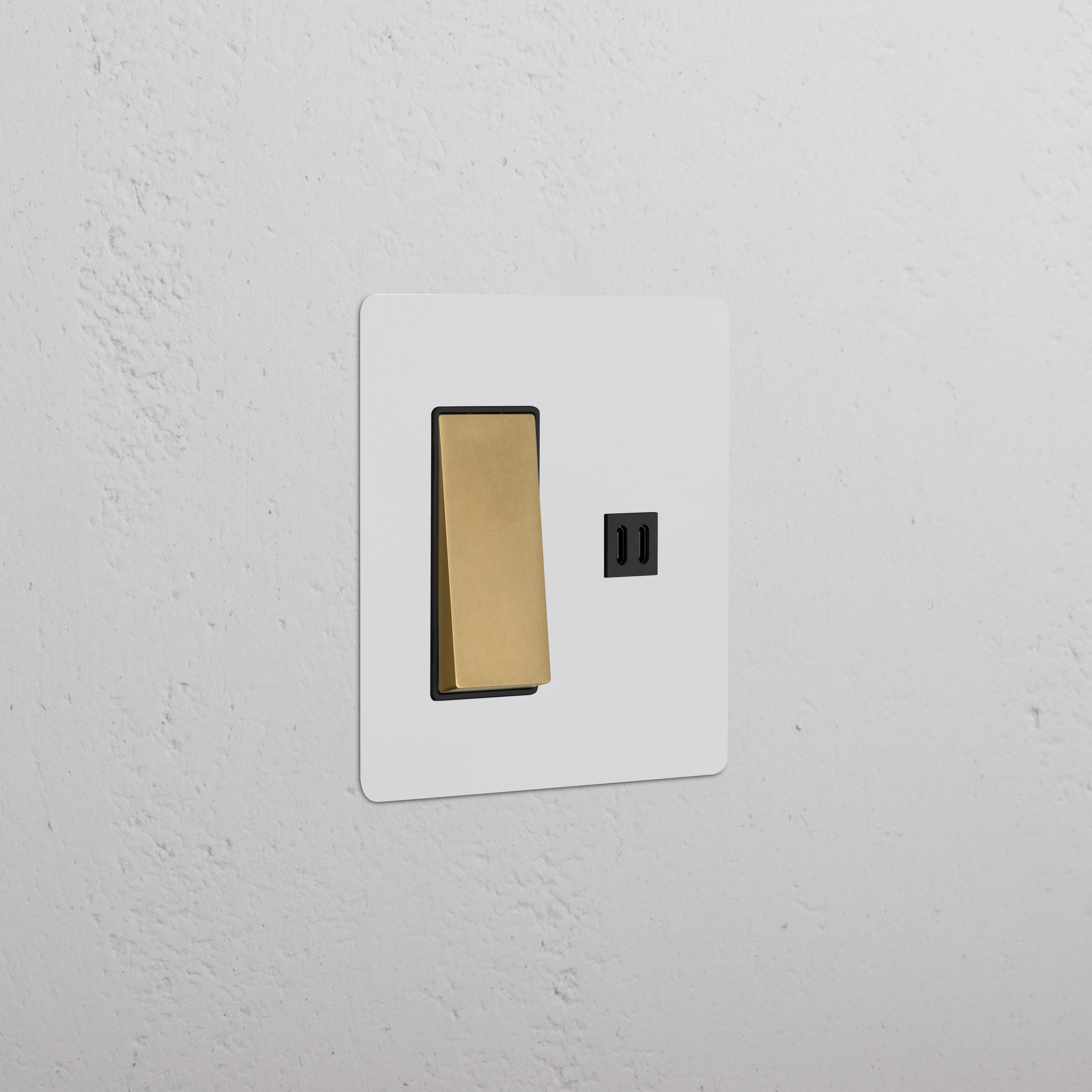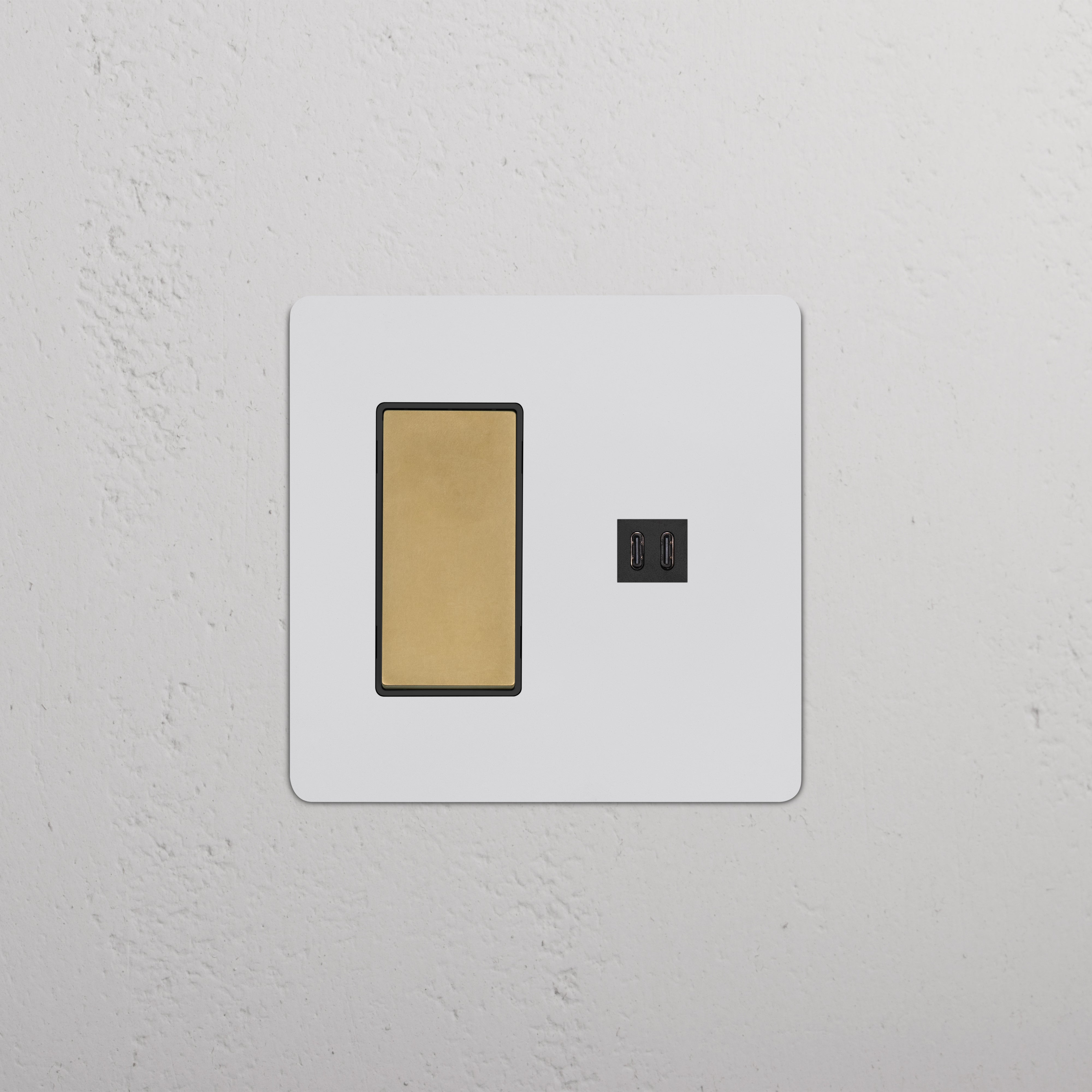 This 2 gang mixed switch and outlet combines a three-way rocker switch and a fast charge USB-C outlet on one plate.