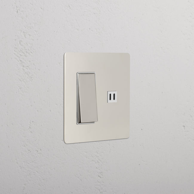 This 2 gang mixed switch and outlet combines a three-way rocker switch and a fast charge USB-C outlet on one plate.