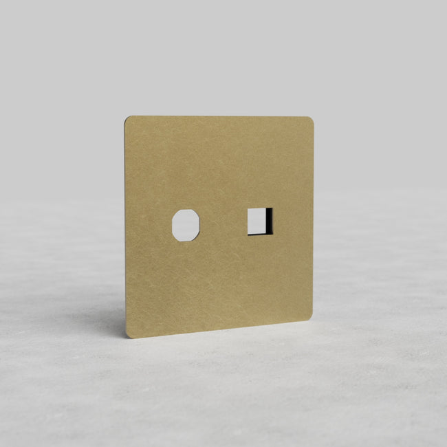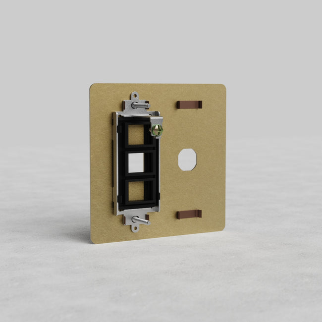 This Kew 2 gang switch and keystone plate works with any one of our antique brass toggle or rotary dimmer switches and any one of our keystone modules.