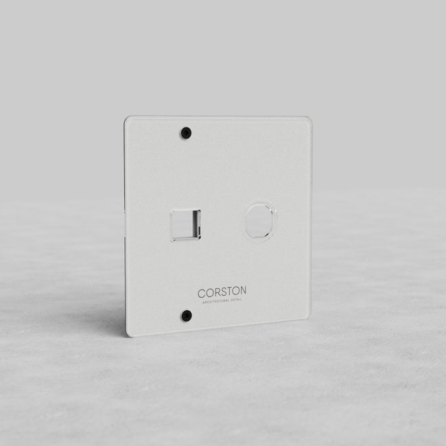 This Kew clear 2 gang switch and keystone plate works with any one of our toggle or rotary dimmer switches and any one of our keystone modules.