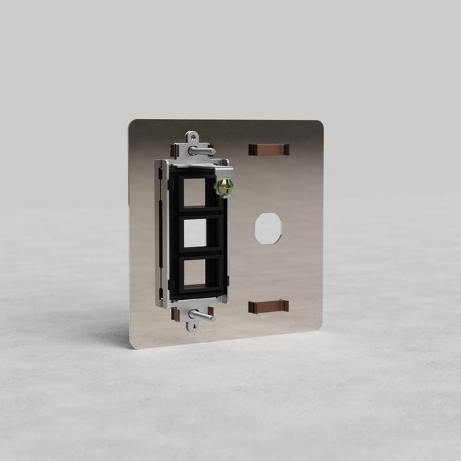 This Kew 2 gang switch and keystone plate works with any one of our polished nickel toggle or rotary dimmer switches and any one of our keystone modules.