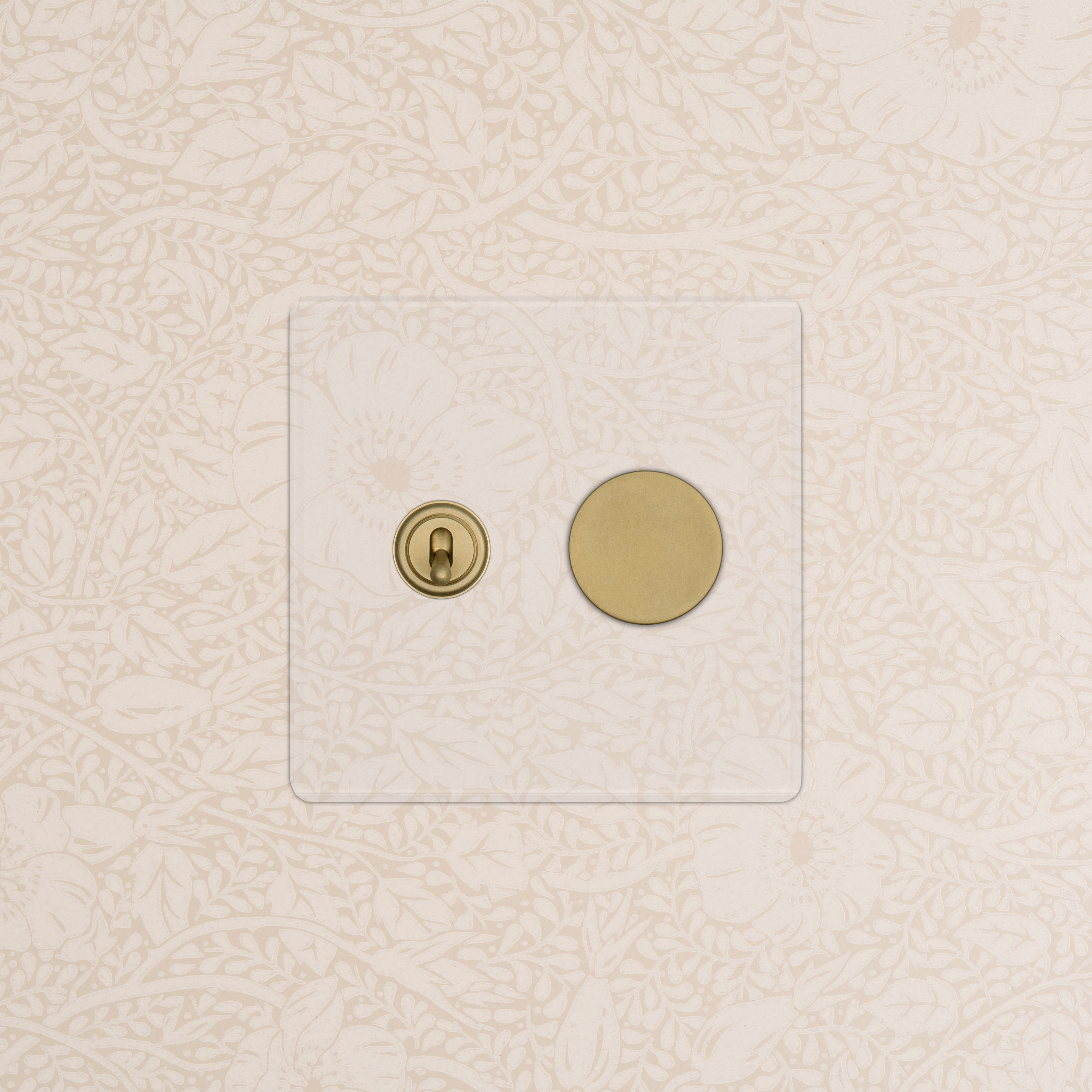 The clear switches and outlets in our Kew collection come with backing paper that you can either paint or use as a wallpaper template. The transparent front plate is then secured over the backing paper to conceal the electrics. All our electrical products should be installed by a qualified electrician.