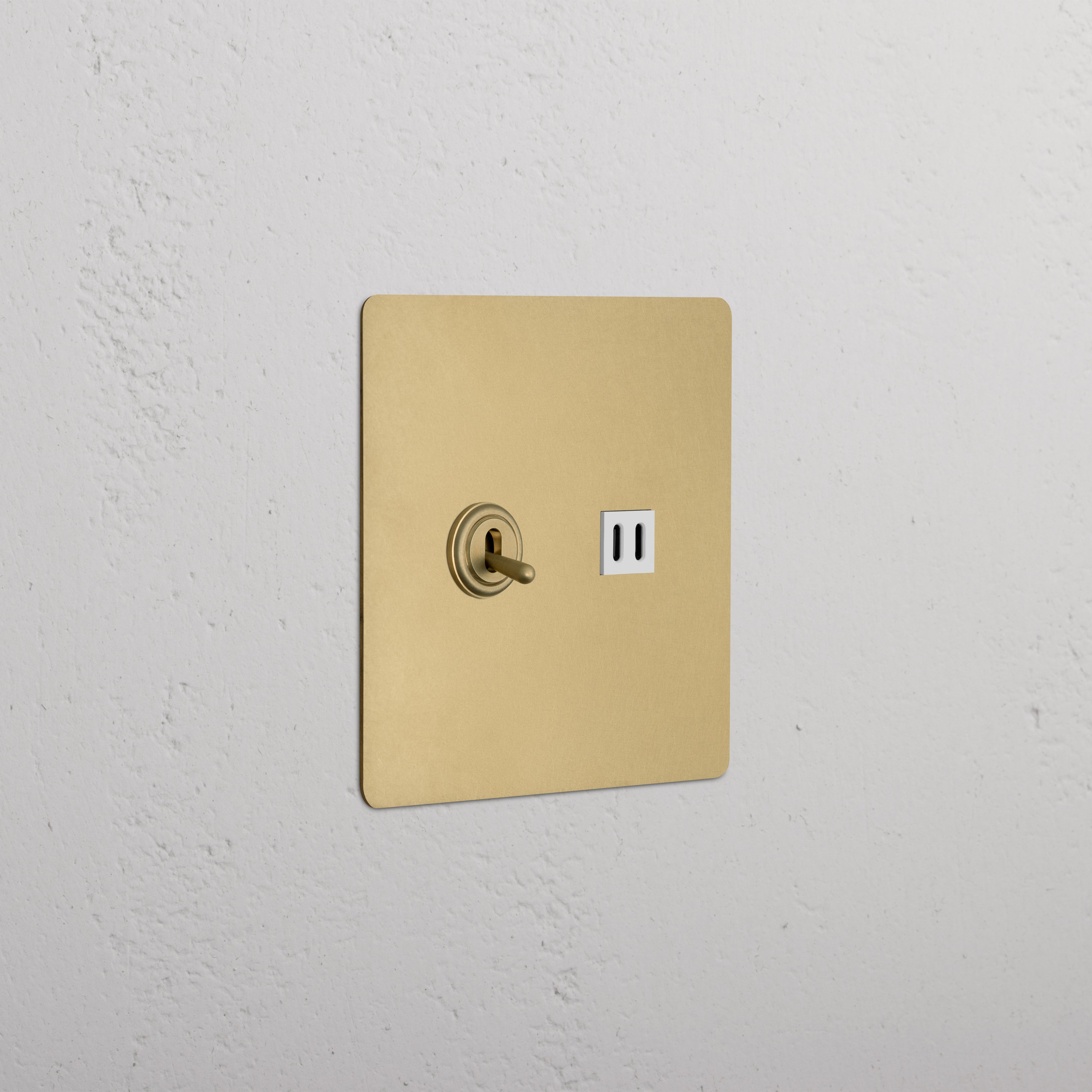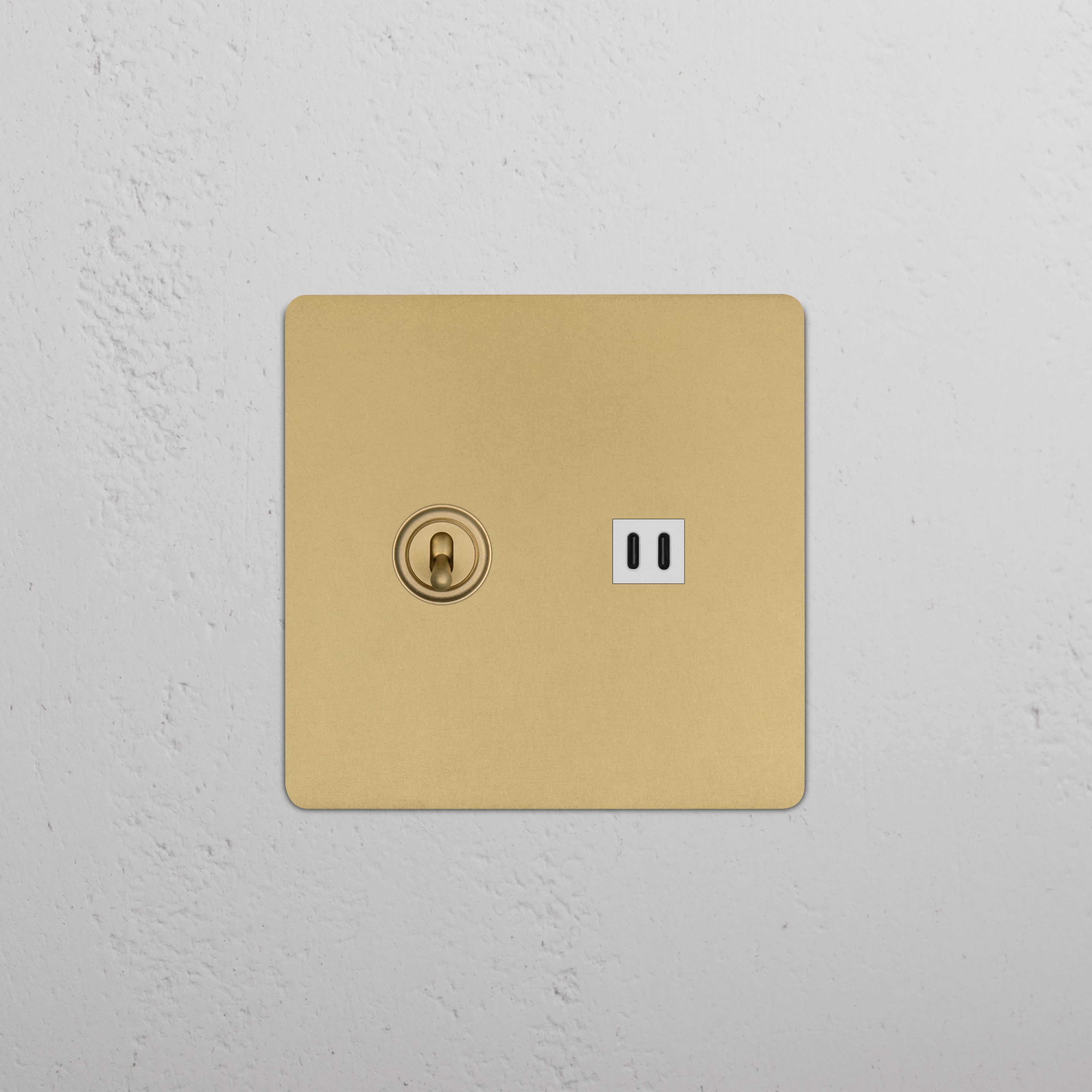 This 2 gang mixed switch and outlet combines a three-way toggle switch and a fast charge USB-C outlet on one plate.