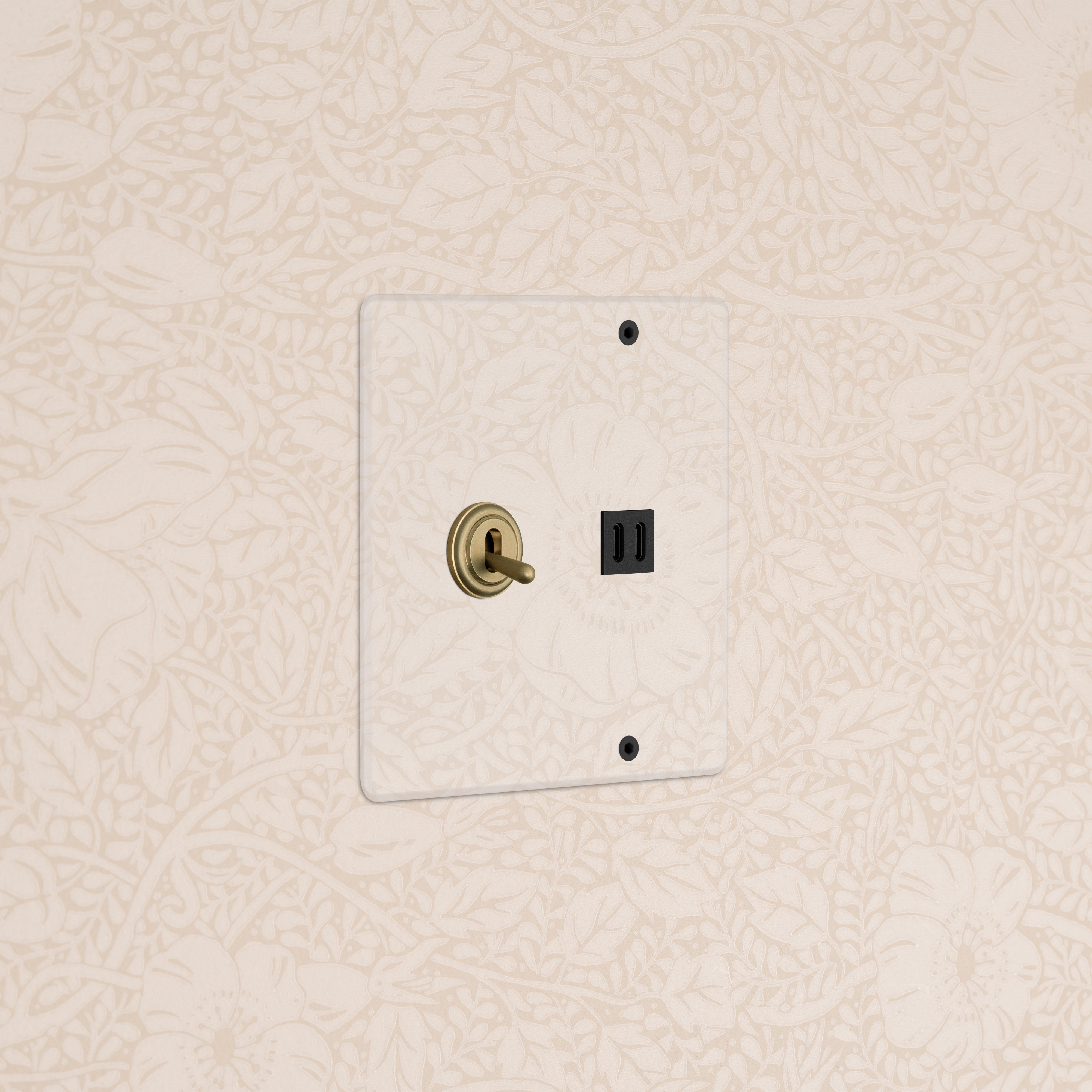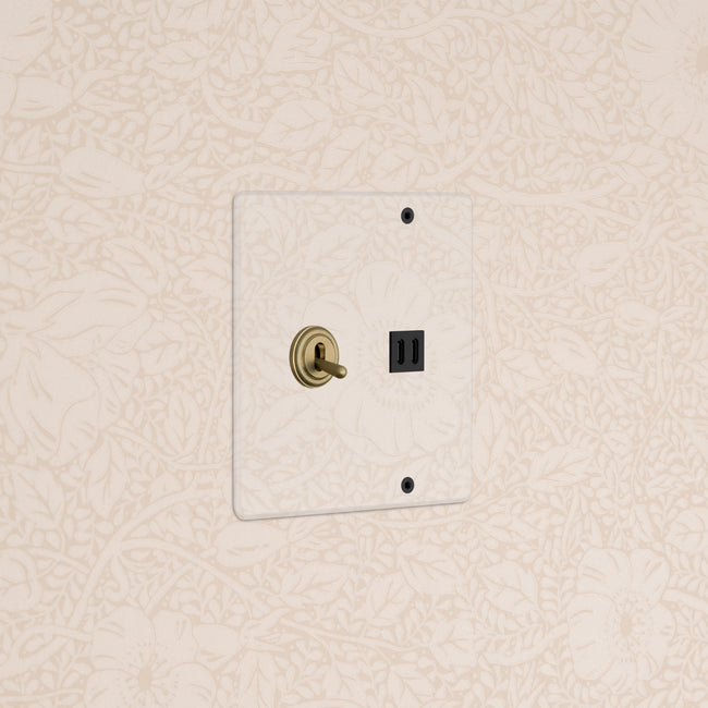 The clear switches and outlets in our Kew collection come with backing paper that you can either paint or use as a wallpaper template. The transparent front plate is then secured over the backing paper to conceal the electrics. All our electrical products should be installed by a qualified electrician.