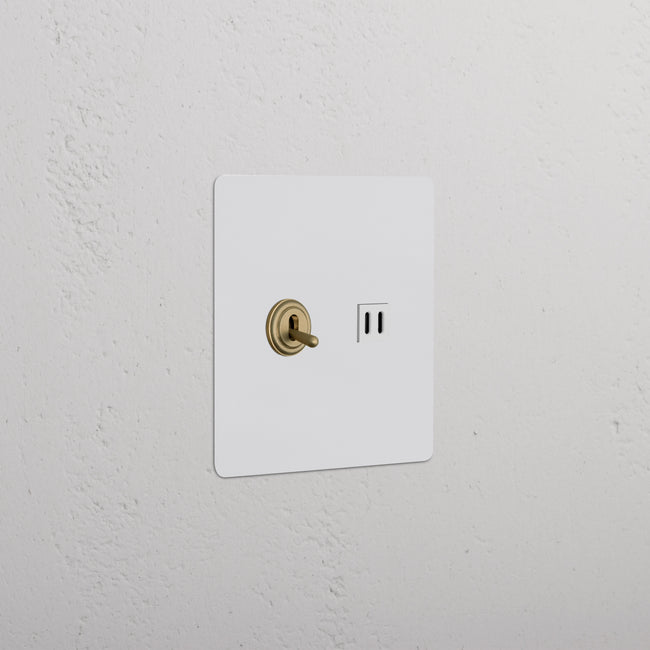 This 2 gang mixed switch and outlet combines a three-way toggle switch and a fast charge USB-C outlet on one plate.