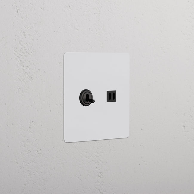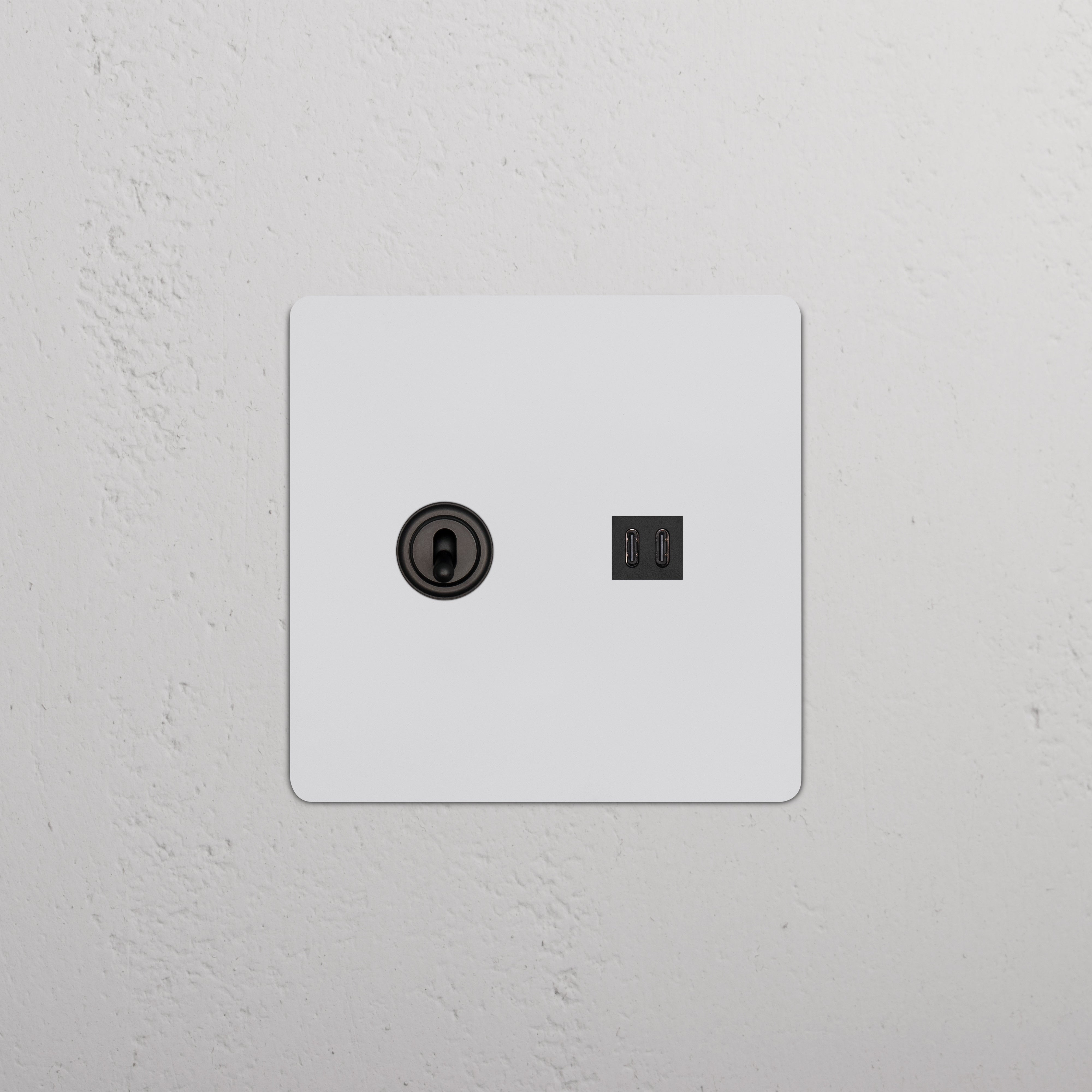 This 2 gang mixed switch and outlet combines a three-way toggle switch and a fast charge USB-C outlet on one plate.