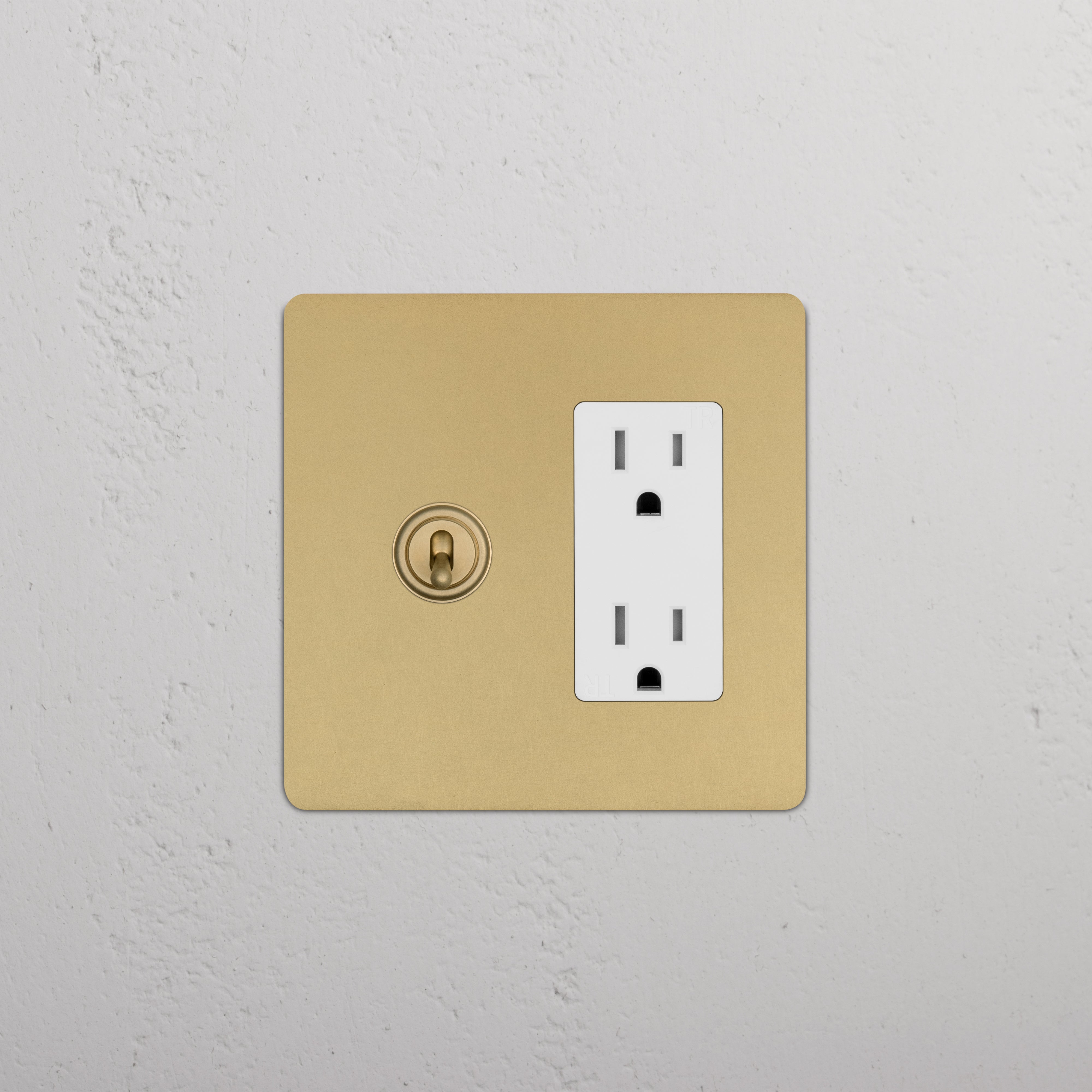 This 2 gang mixed switch and outlet combines a three-way toggle switch and a 15A power outlet on one plate.