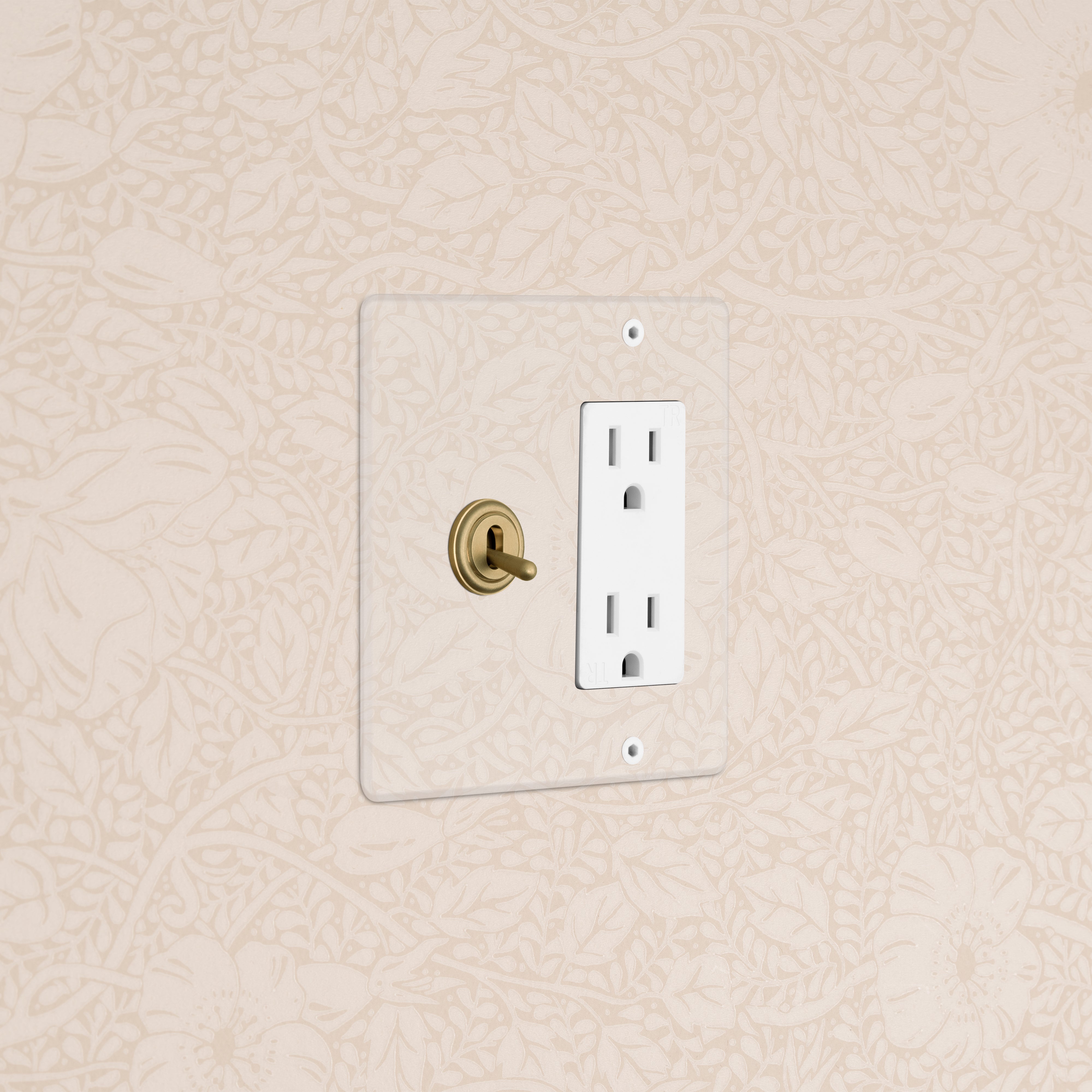 The clear switches and outlets in our Kew collection come with backing paper that you can either paint or use as a wallpaper template. The transparent front plate is then secured over the backing paper to conceal the electrics. All our electrical products should be installed by a qualified electrician.