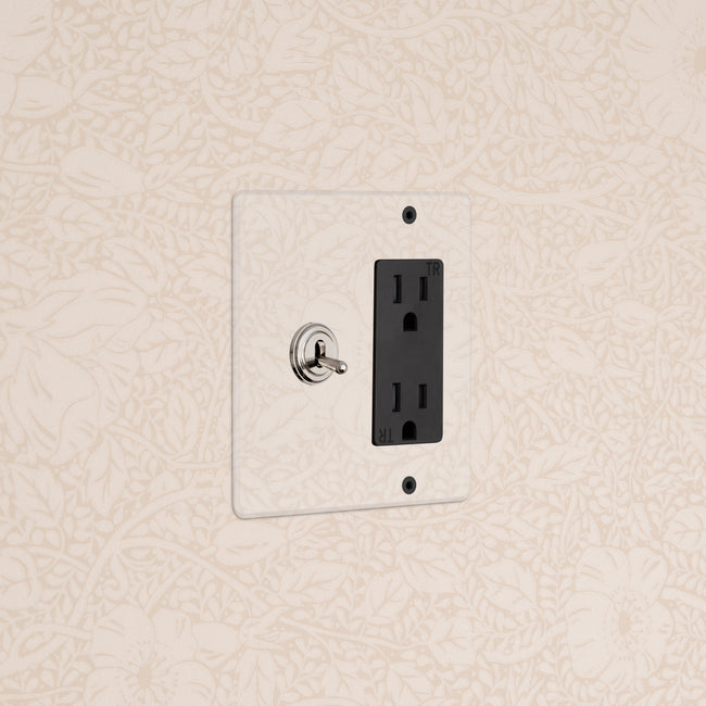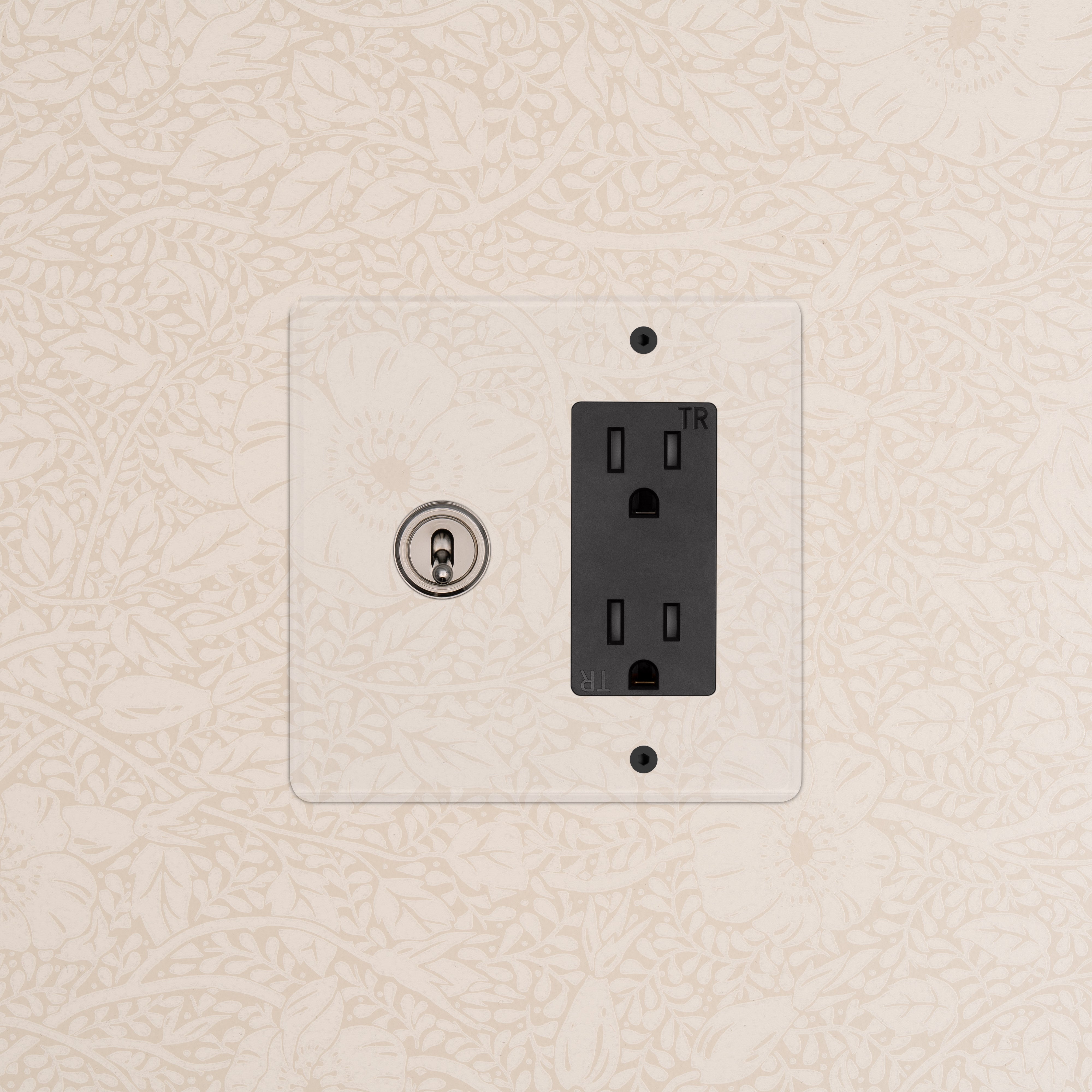 The low-sheen, slightly textured plastic insert around the outlet comes in black (like this one) or white.