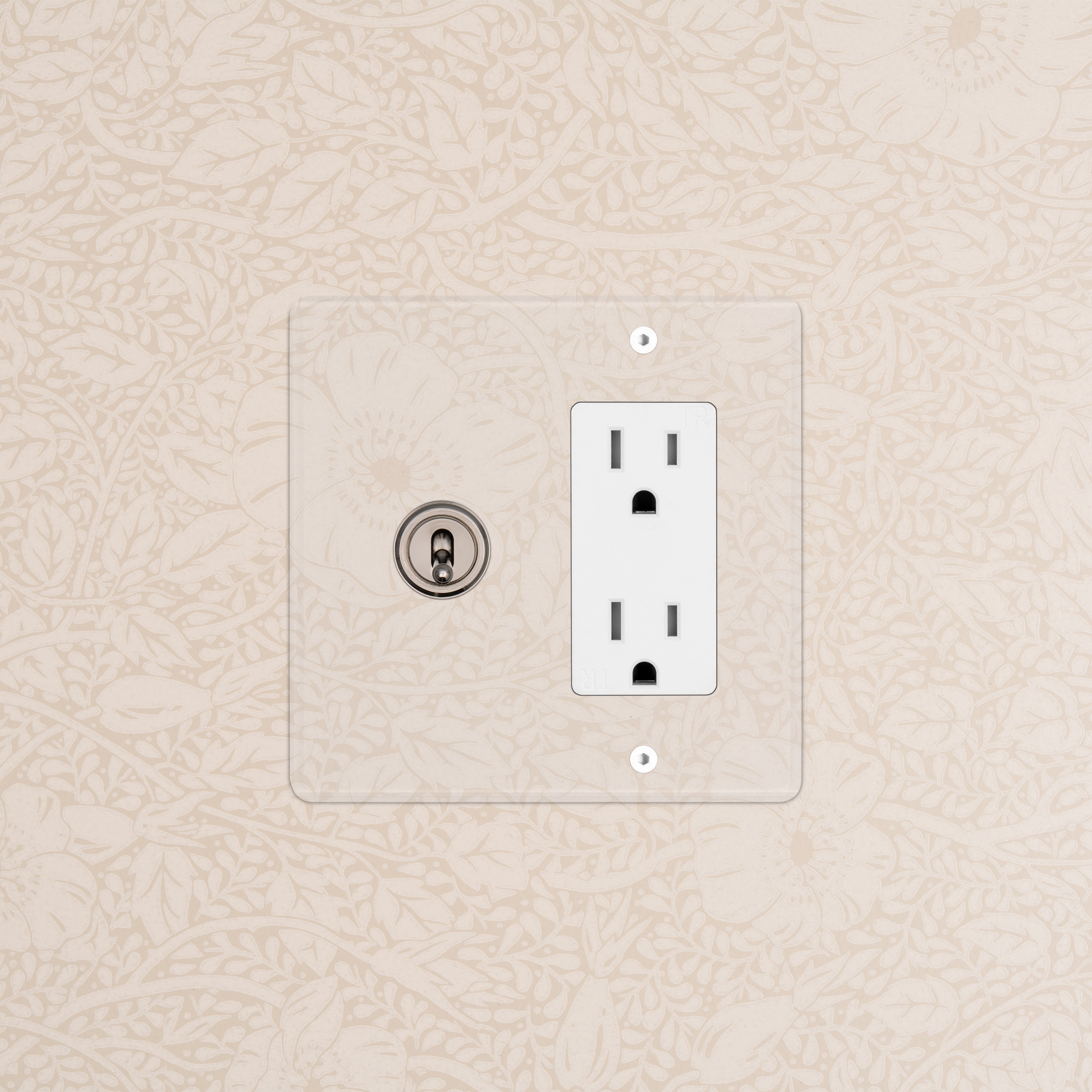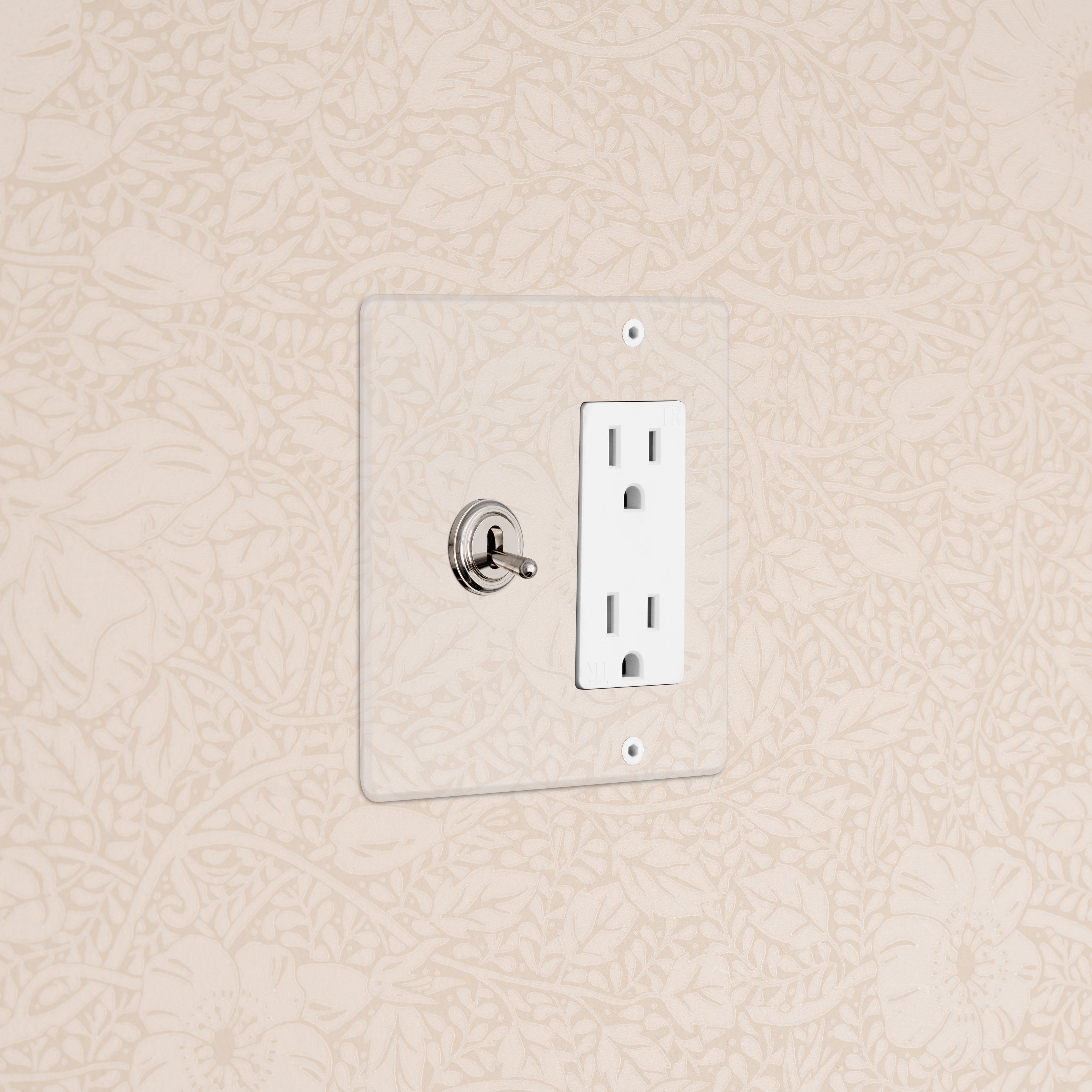 The clear switches and outlets in our Kew collection come with backing paper that you can either paint or use as a wallpaper template. The transparent front plate is then secured over the backing paper to conceal the electrics. All our electrical products should be installed by a qualified electrician.