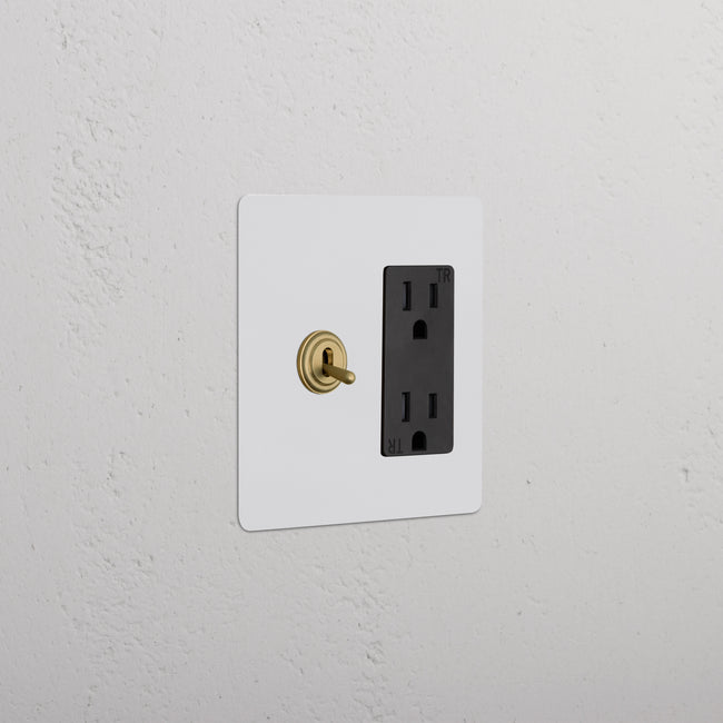 This 2 gang mixed switch and outlet combines a three-way toggle switch and a 15A power outlet on one plate.