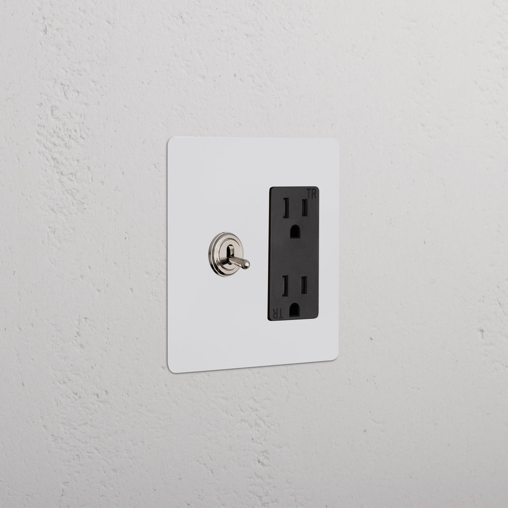 This 2 gang mixed switch and outlet combines a three-way toggle switch and a 15A power outlet on one plate.
