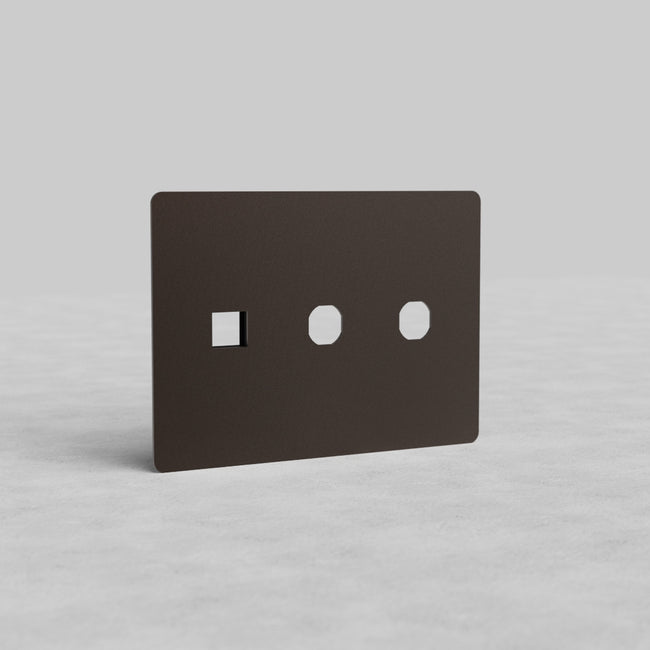 This Kew 3 gang 2x switch and keystone plate works with any two of our bronze toggle or rotary dimmer switches and any one of our keystone modules (just make sure you choose the ones made with black plastic).