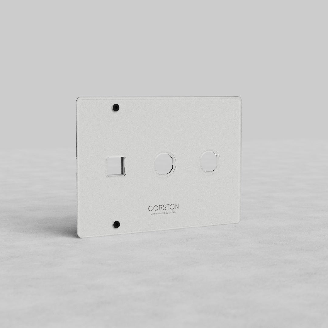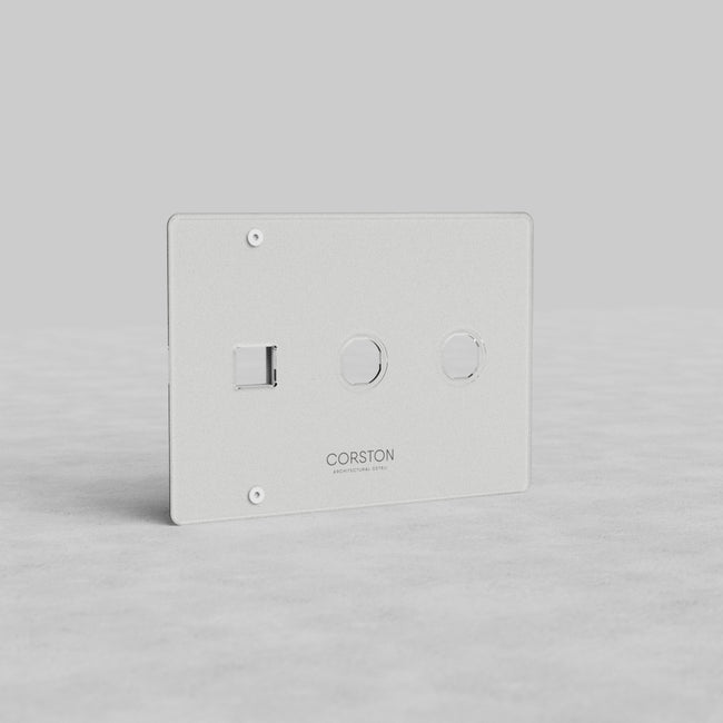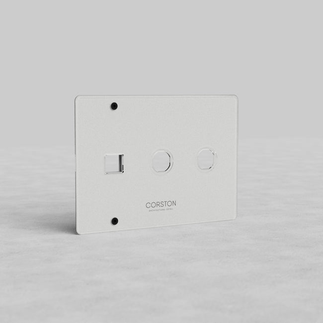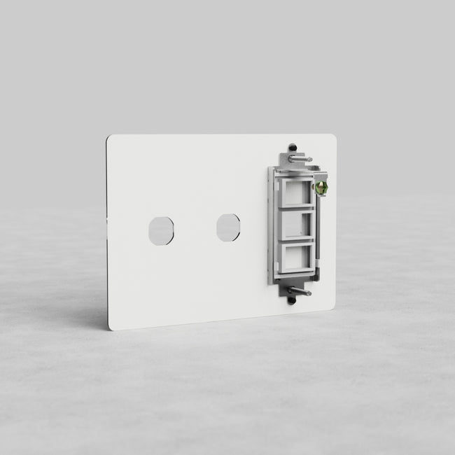 This Kew clear 3 gang 2x switch and keystone plate works with any two of our toggle or rotary dimmer switches and any one of our keystone modules.