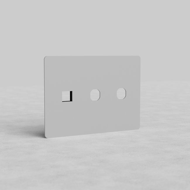This Kew paintable 3 gang 2x switch and keystone plate works with any two of our toggle or rotary dimmer switches and any one of our keystone modules.