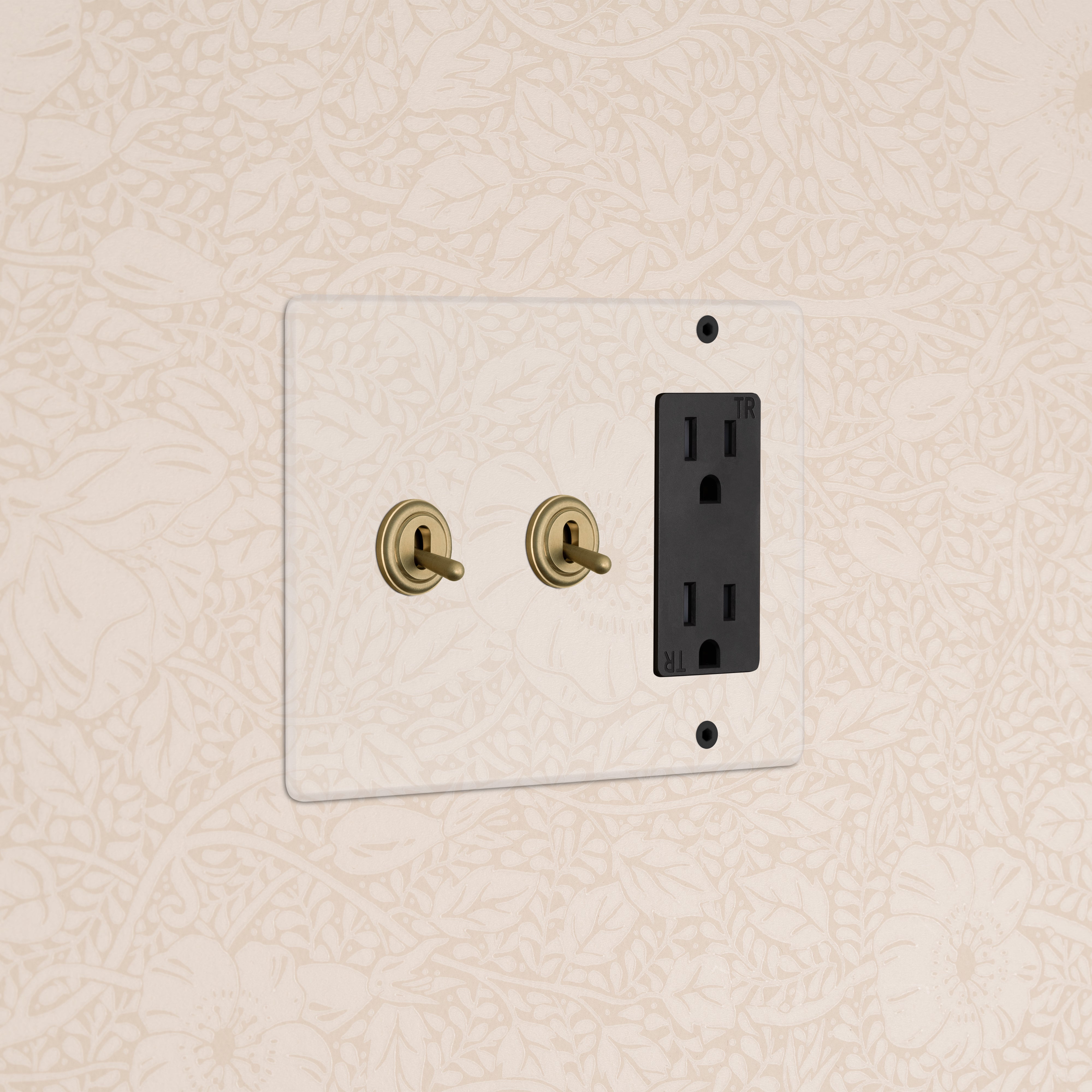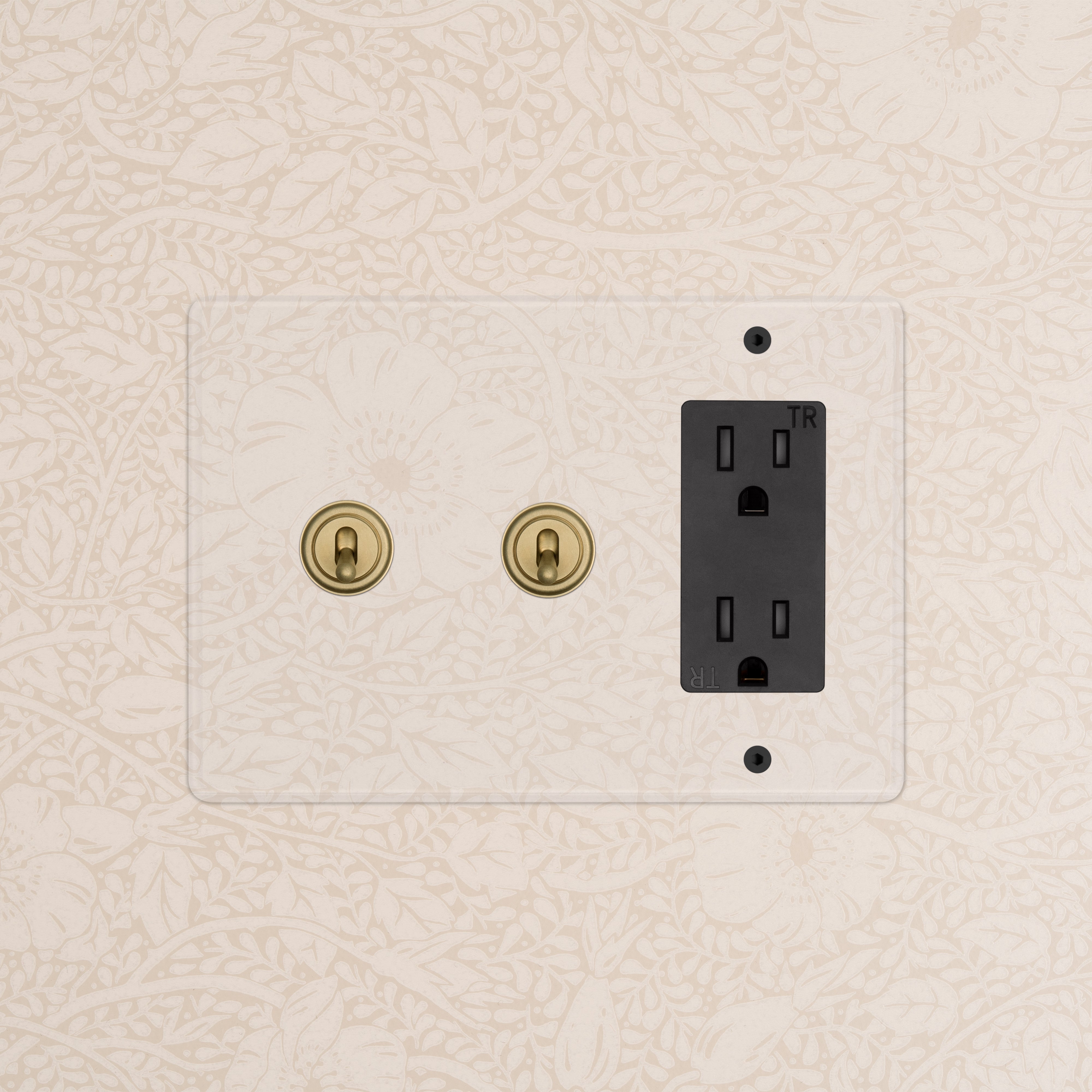 The clear switches and outlets in our Kew collection come with backing paper that you can either paint or use as a wallpaper template. The transparent front plate is then secured over the backing paper to conceal the electrics. All our electrical products should be installed by a qualified electrician.