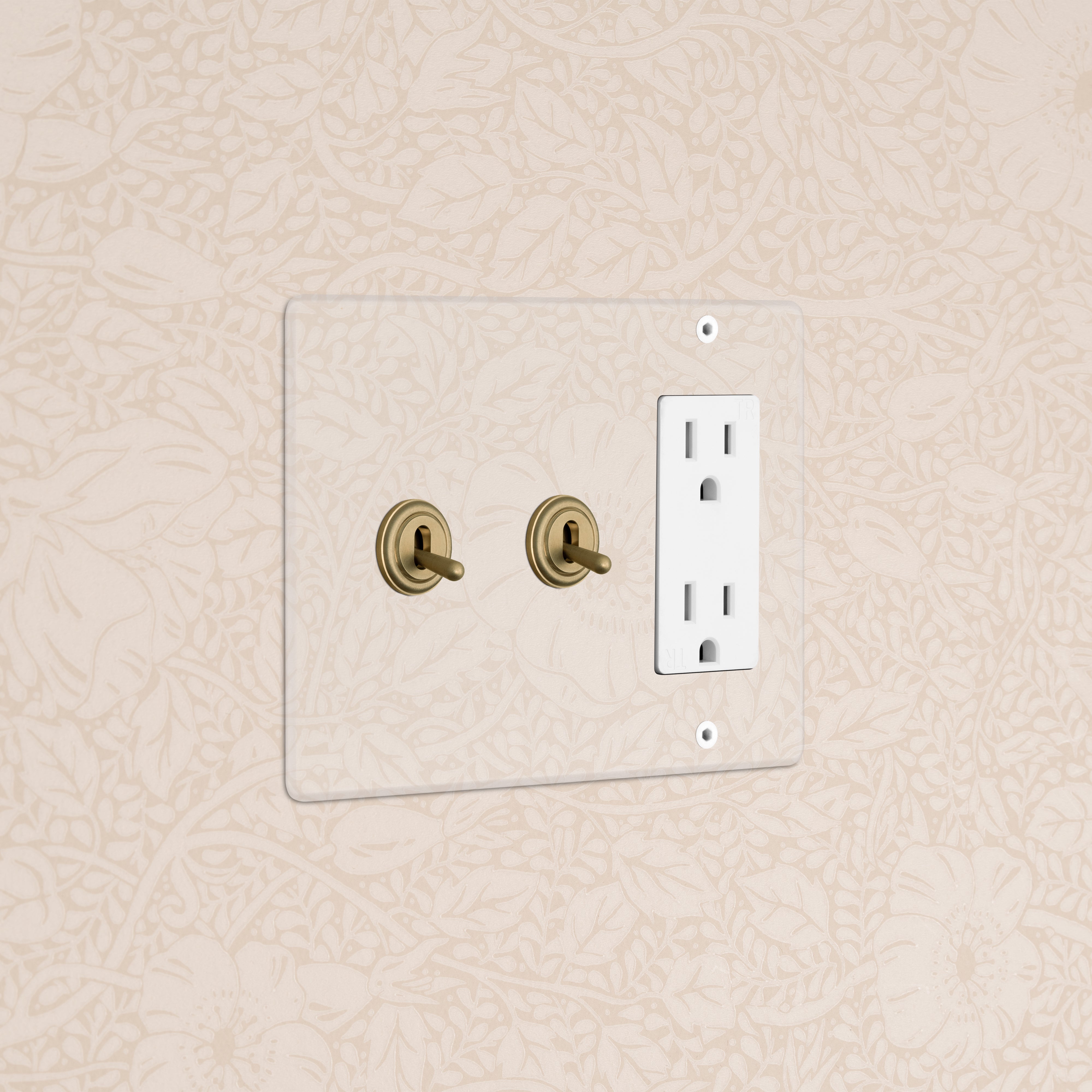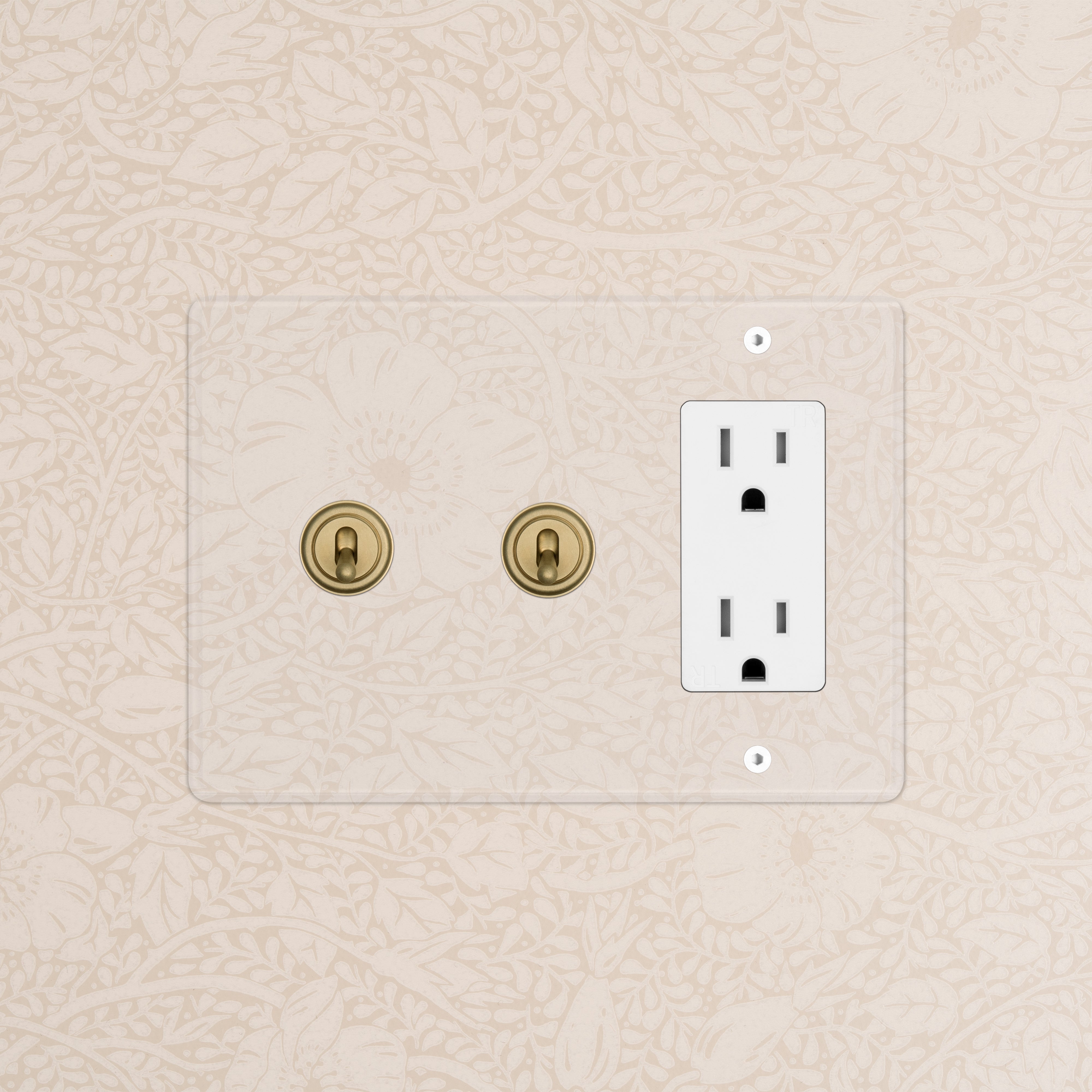 The clear switches and outlets in our Kew collection come with backing paper that you can either paint or use as a wallpaper template. The transparent front plate is then secured over the backing paper to conceal the electrics. All our electrical products should be installed by a qualified electrician.