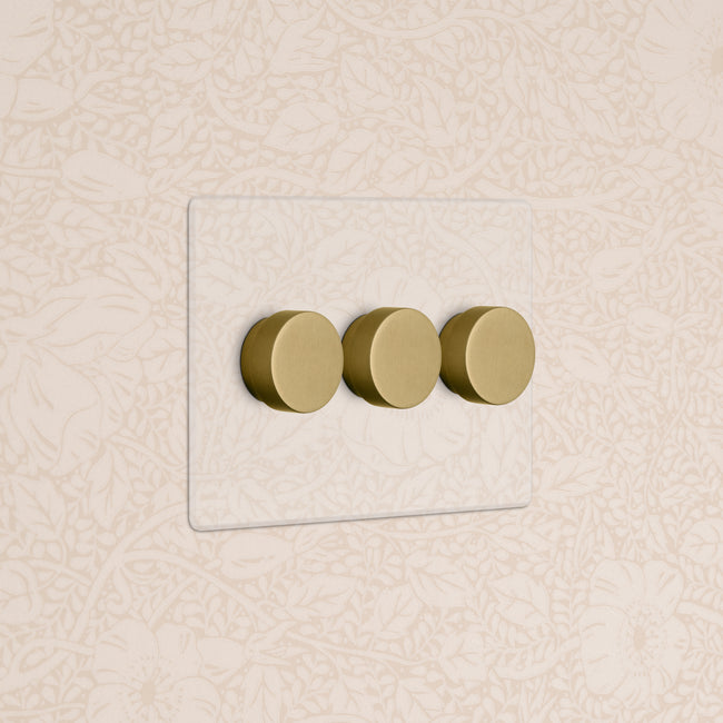 Our 3 gang rotary dimmer switch is crafted to be as sleek and timeless as possible in any interior setting.