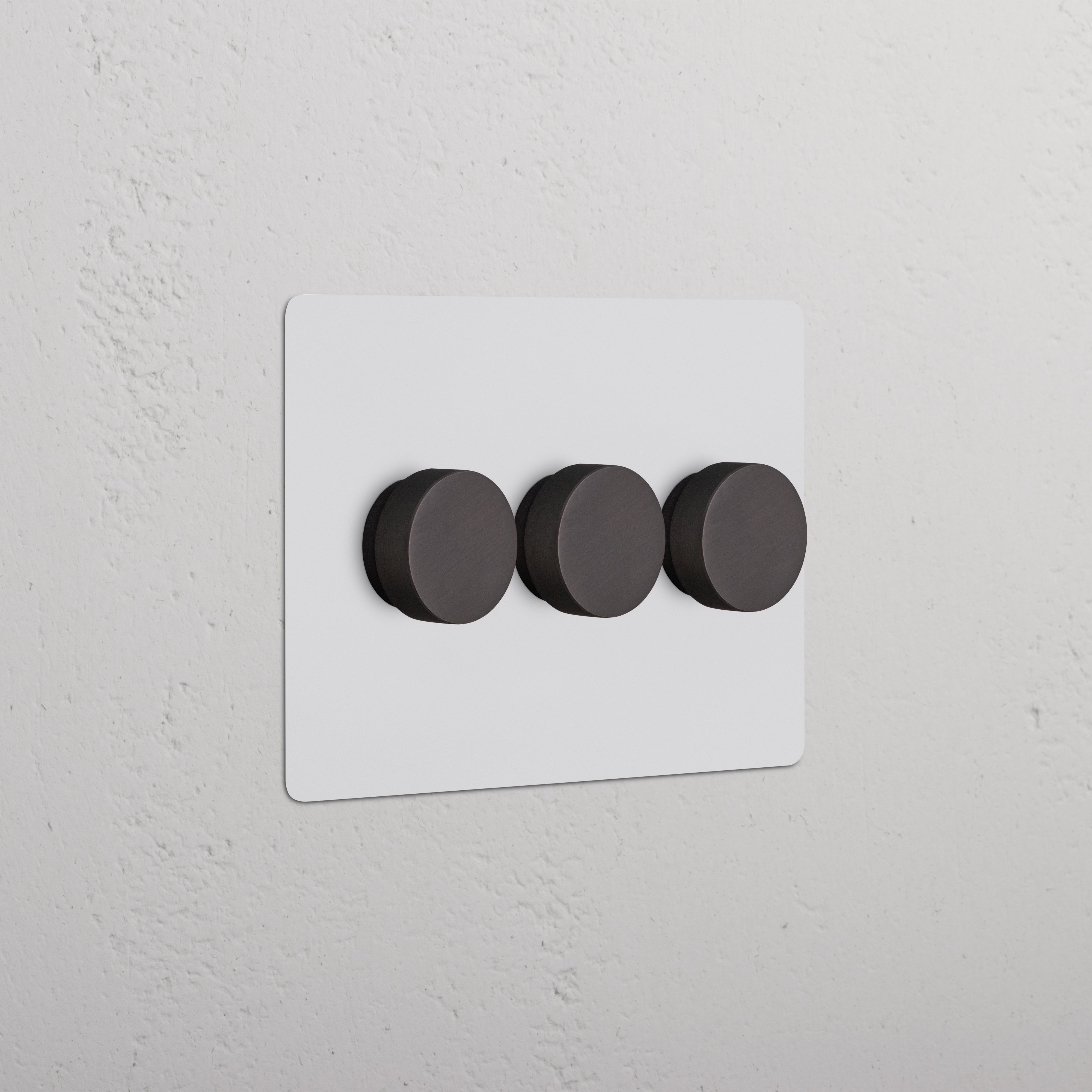 Our 3 gang rotary dimmer switch is crafted to be as sleek and timeless as possible in any interior setting.