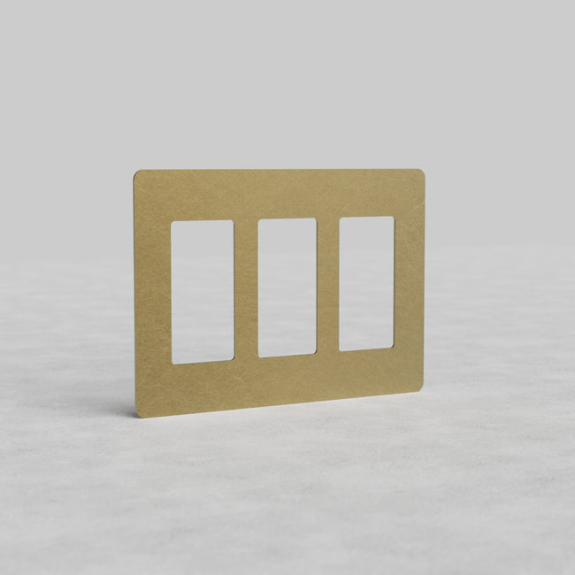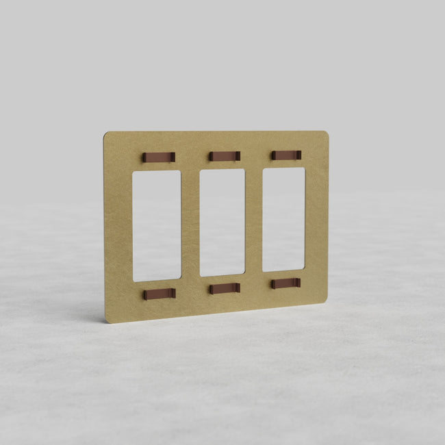 This Kew 3 gang outlet plate works with any three of our antique brass rocker switches or outlet modules.