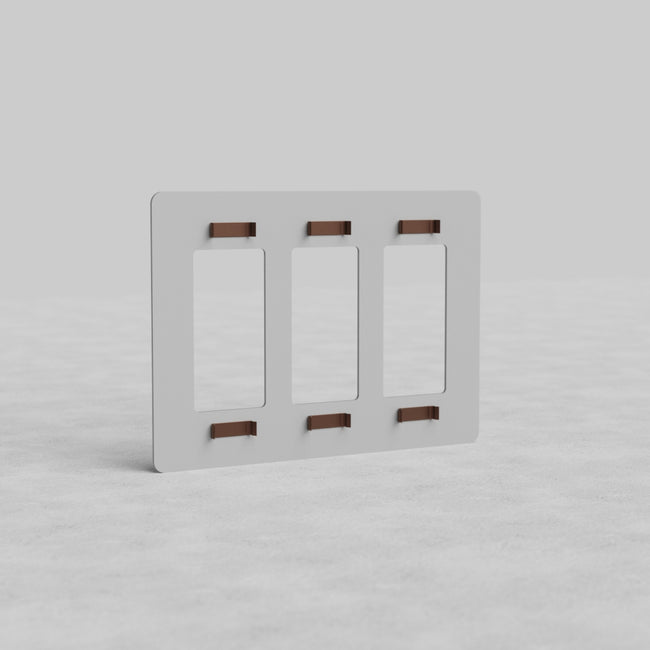 This Kew paintable 3 gang outlet plate works with any three of our rocker switches or our outlet modules.