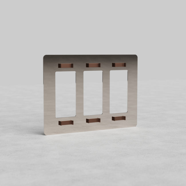 This Kew 3 gang outlet plate works with any three of our polished nickel rocker switches or our outlet modules.