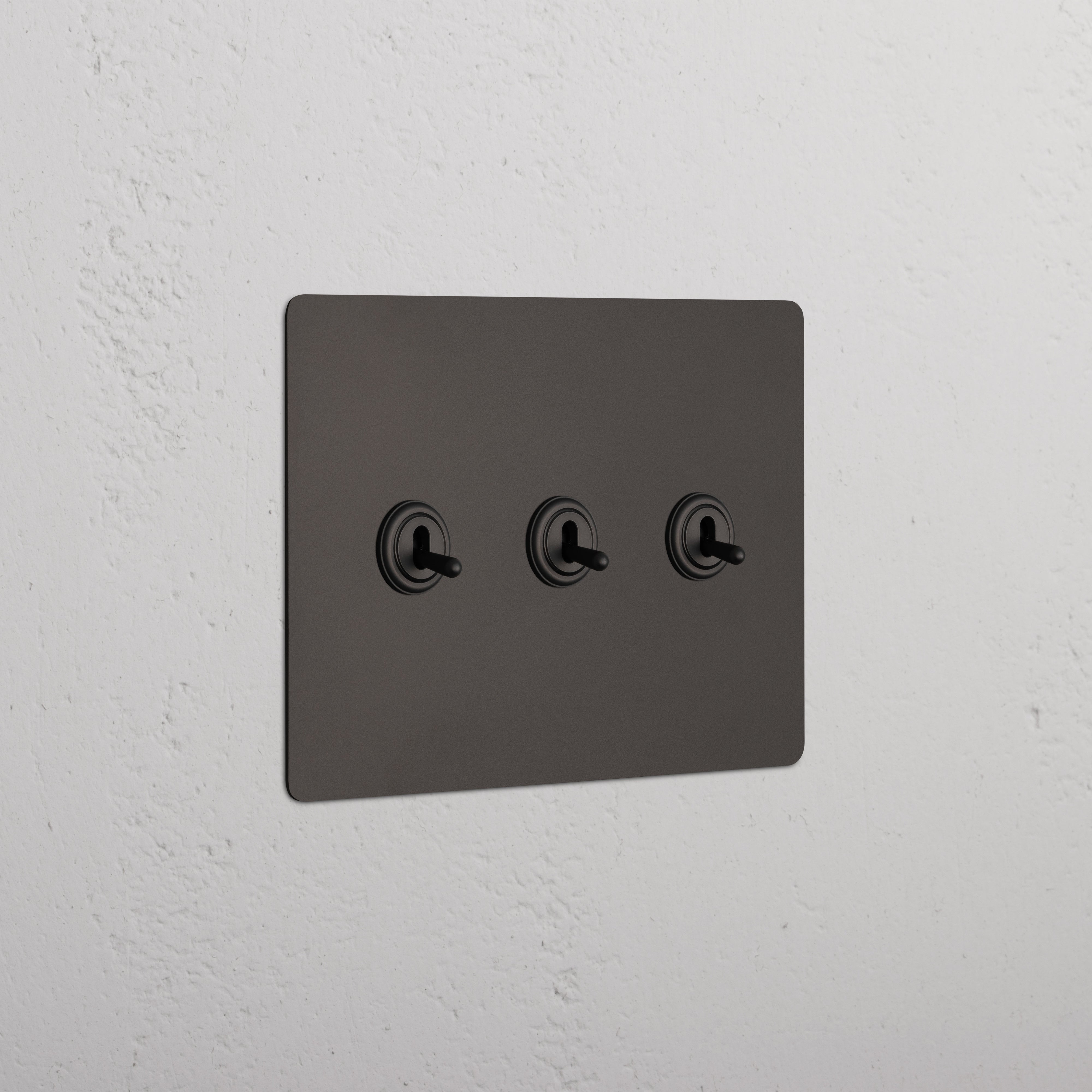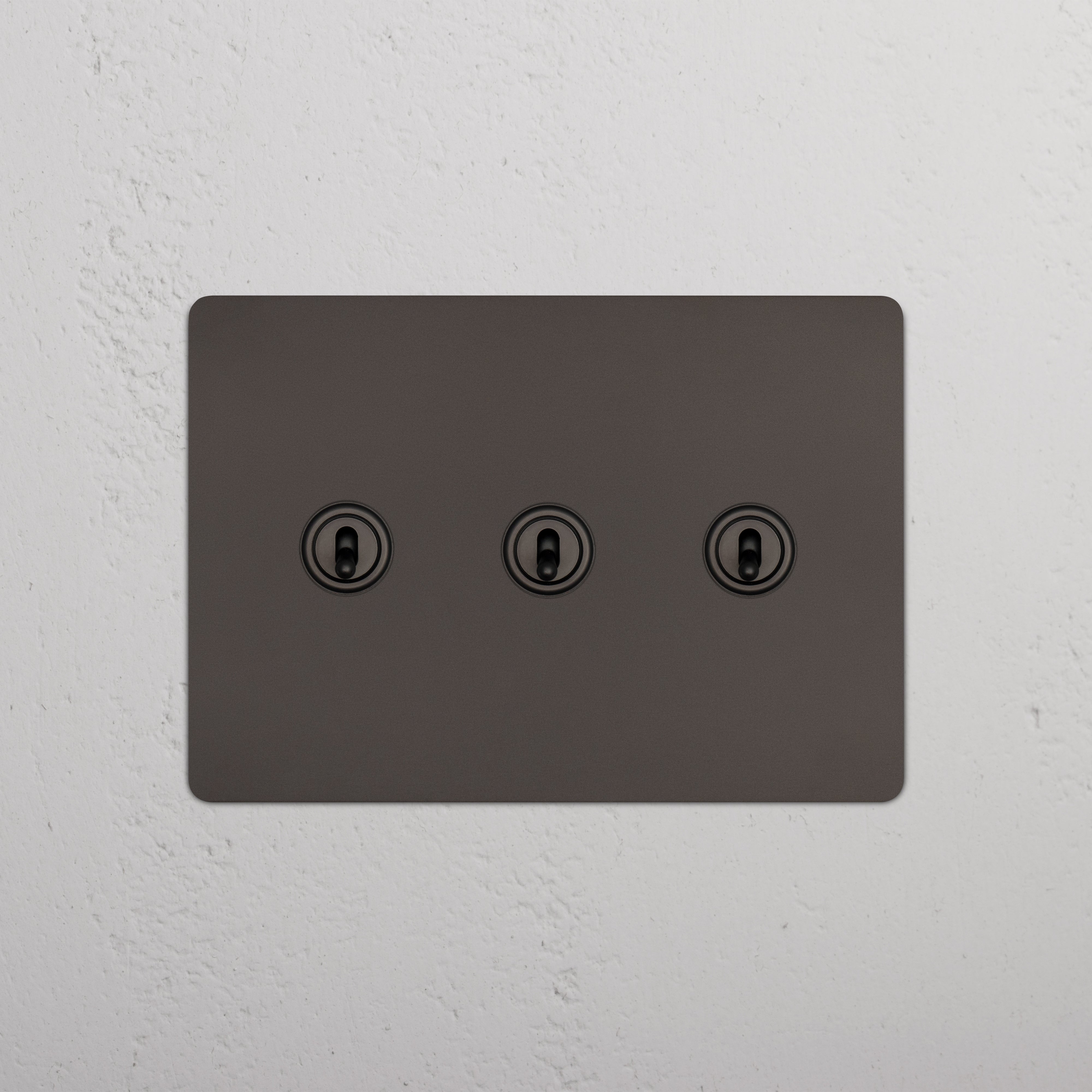 Our 3 gang three-way toggle switch is a modern take on the classic dolly design. We’ve crafted it to be as sleek and timeless as possible in any interior setting.