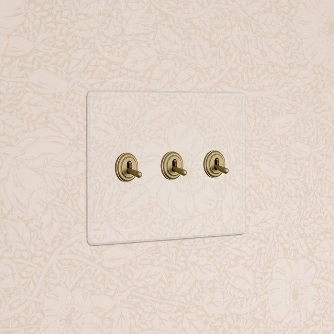 Our 3 gang three-way toggle switch is a modern take on the classic dolly design. We’ve crafted it to be as sleek and timeless as possible in any interior setting.