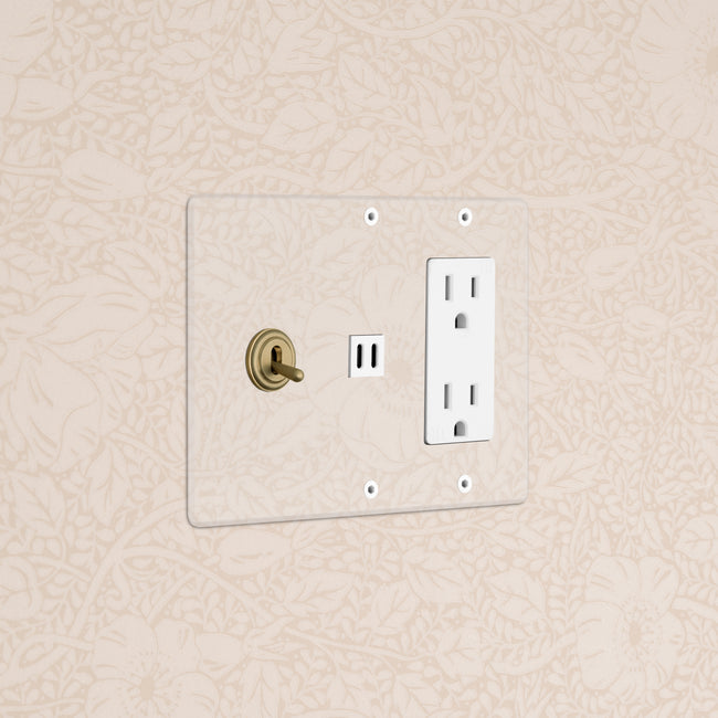 The clear switches and outlets in our Kew collection come with backing paper that you can either paint or use as a wallpaper template. The transparent front plate is then secured over the backing paper to conceal the electrics. All our electrical products should be installed by a qualified electrician.