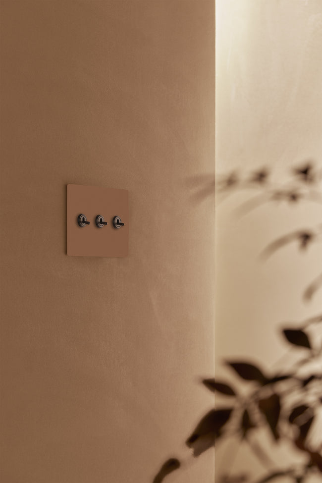 Our 3 gang three-way toggle switch is a modern take on the classic dolly design. We’ve crafted it to be as sleek and timeless as possible in any interior setting.