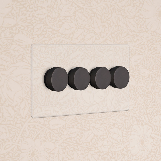 Our 4 gang rotary dimmer switch is crafted to be as sleek and timeless as possible in any interior setting.