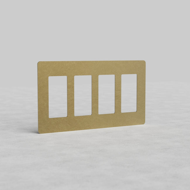This Kew 4 gang outlet plate works with any four of our antique brass rocker switches or our outlet modules.