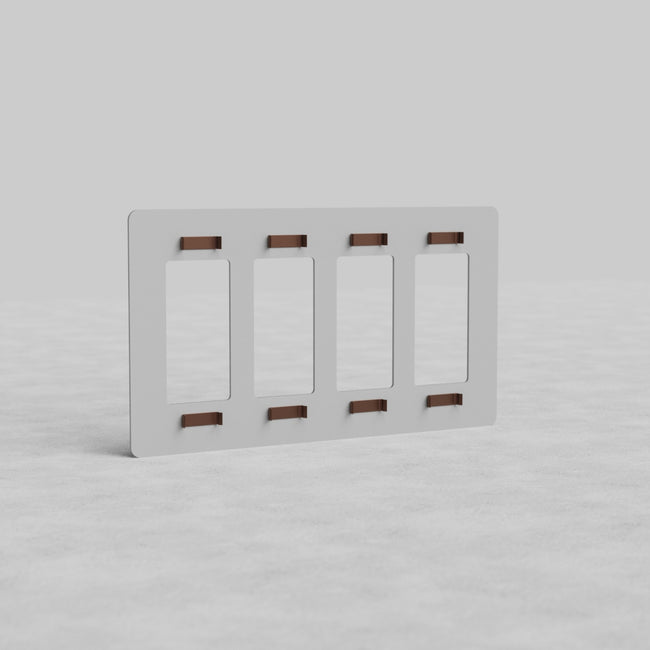 This Kew paintable 4 gang outlet plate works with any four of our rocker switches or our outlet modules.